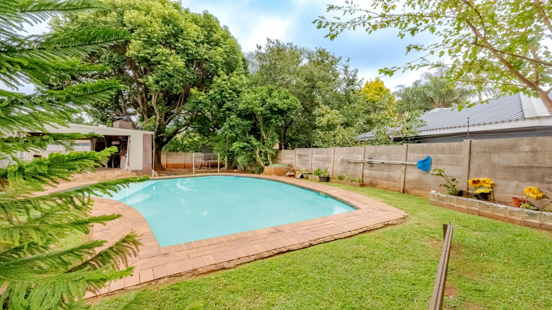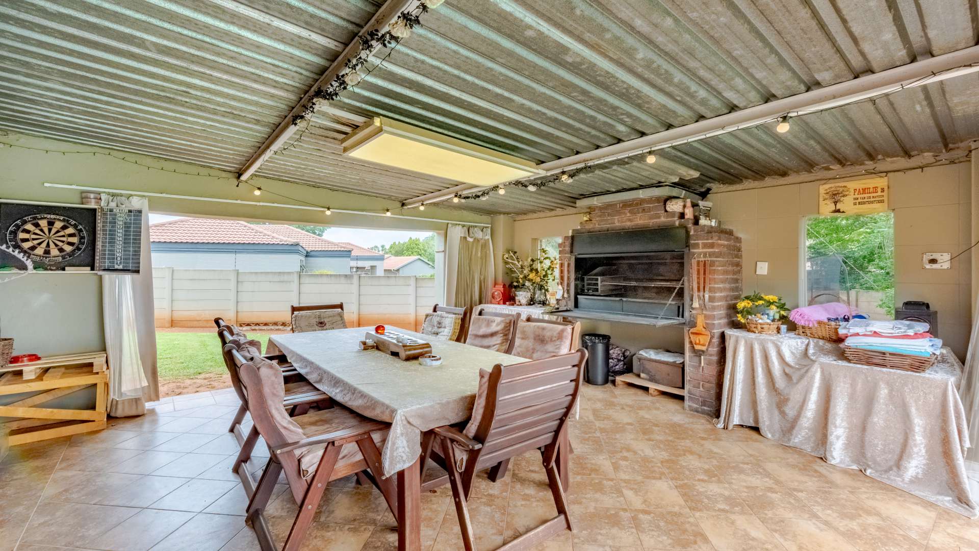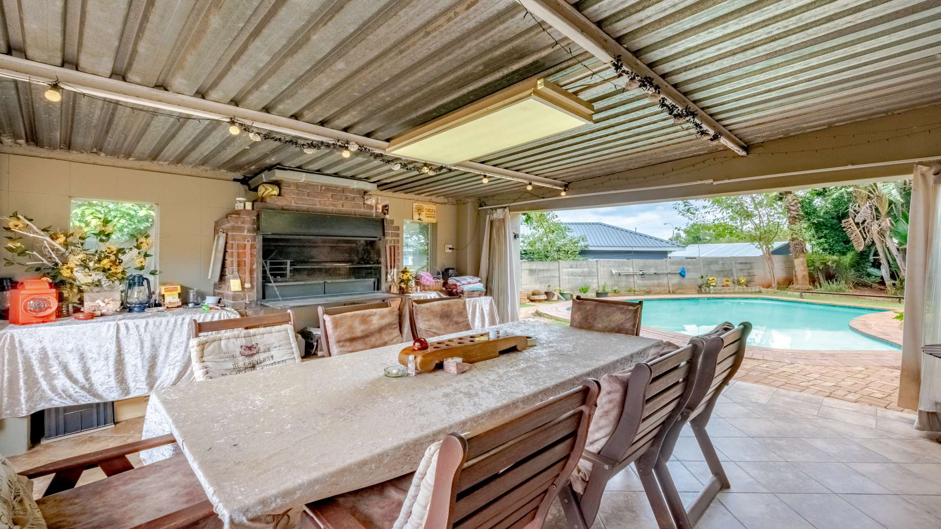 Outside, the magic continues: A covered patio with a built-in braai invites long summer evenings with friends, while the sparkling swimming pool promises endless fun and relaxation. The stand provides plenty of space for kids to play, pets to roam, and memories to be made.