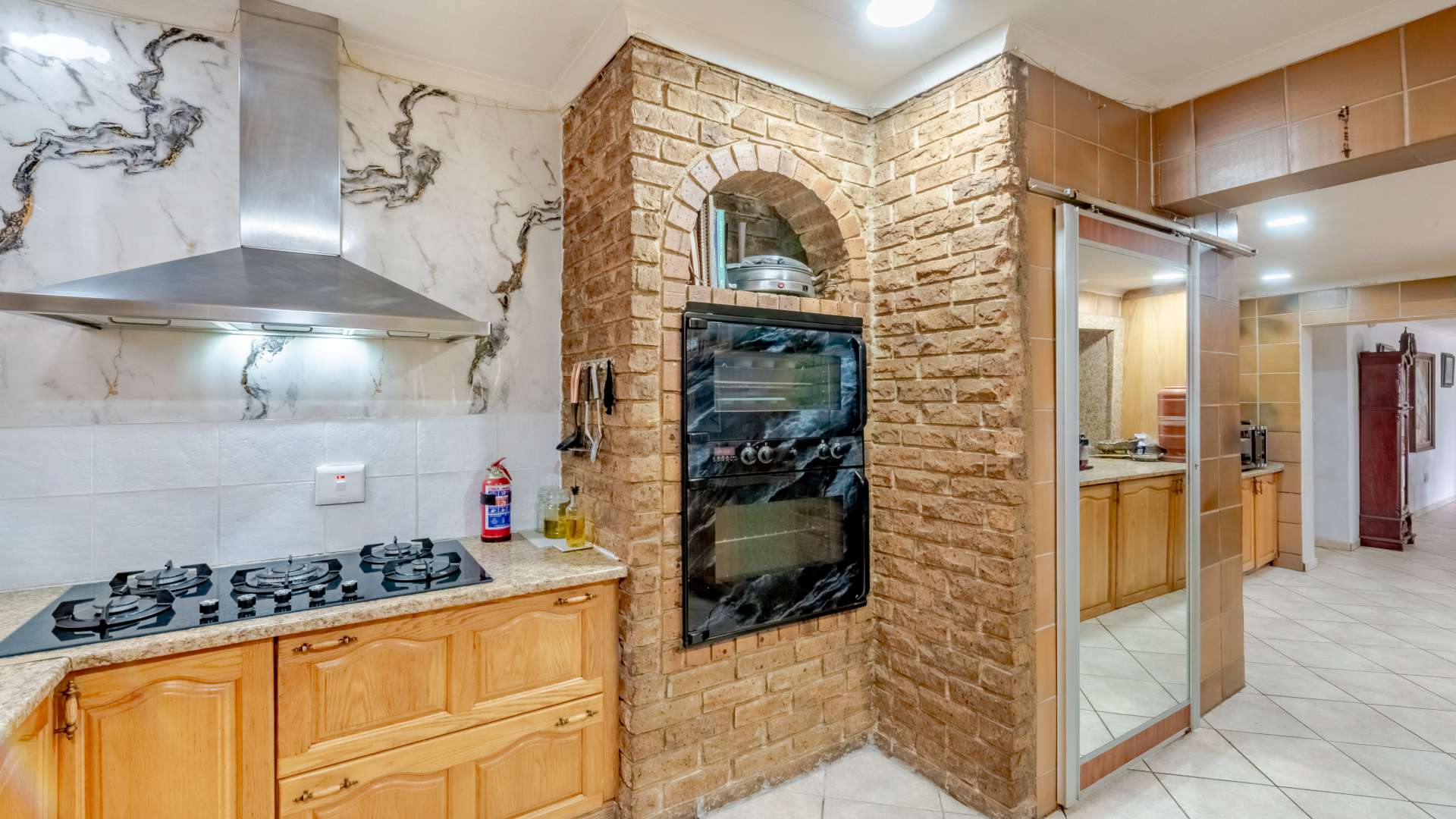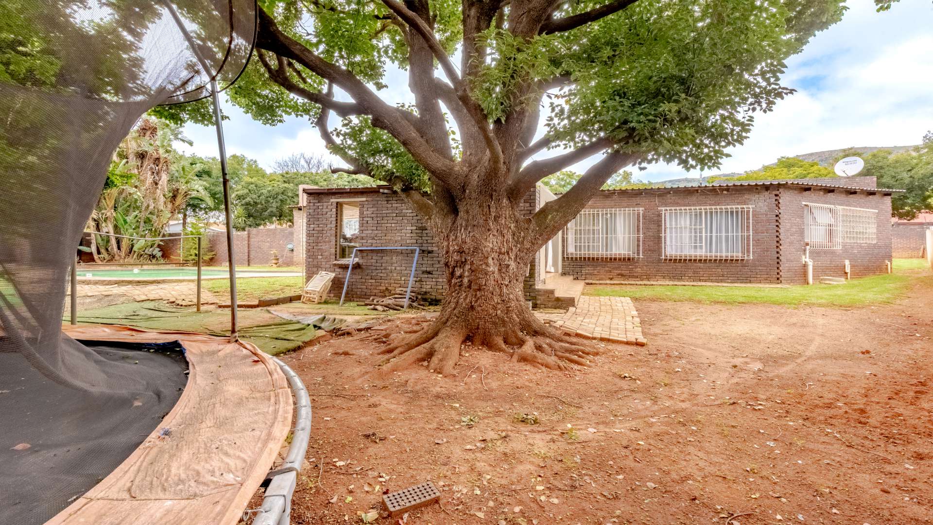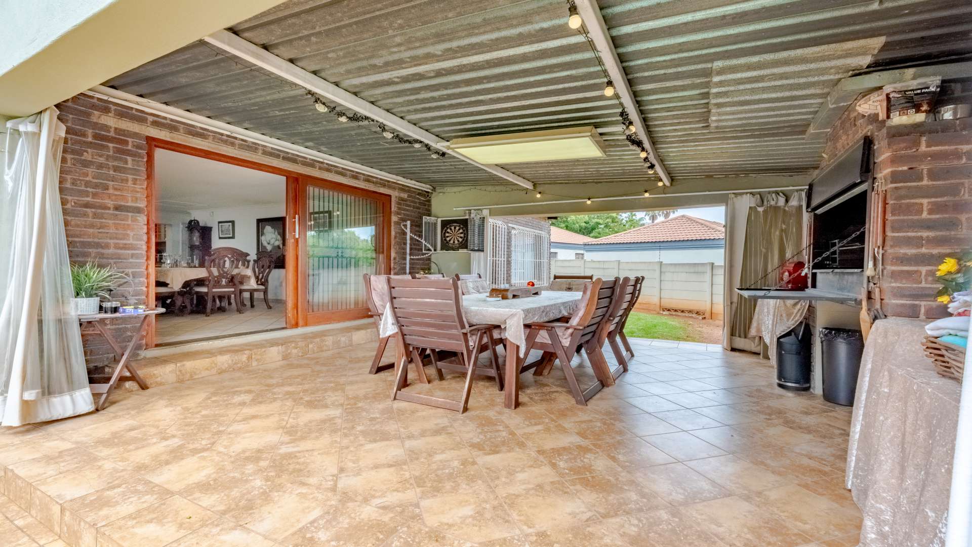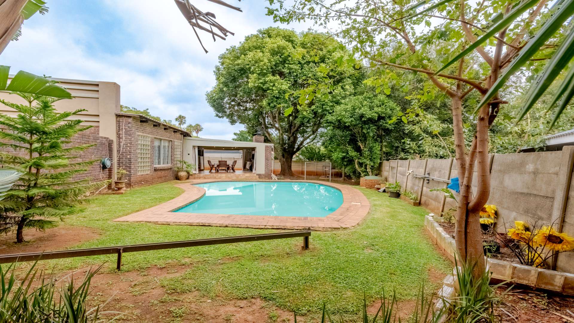 Outside, the magic continues: A covered patio with a built-in braai invites long summer evenings with friends, while the sparkling swimming pool promises endless fun and relaxation. The stand provides plenty of space for kids to play, pets to roam, and memories to be made.