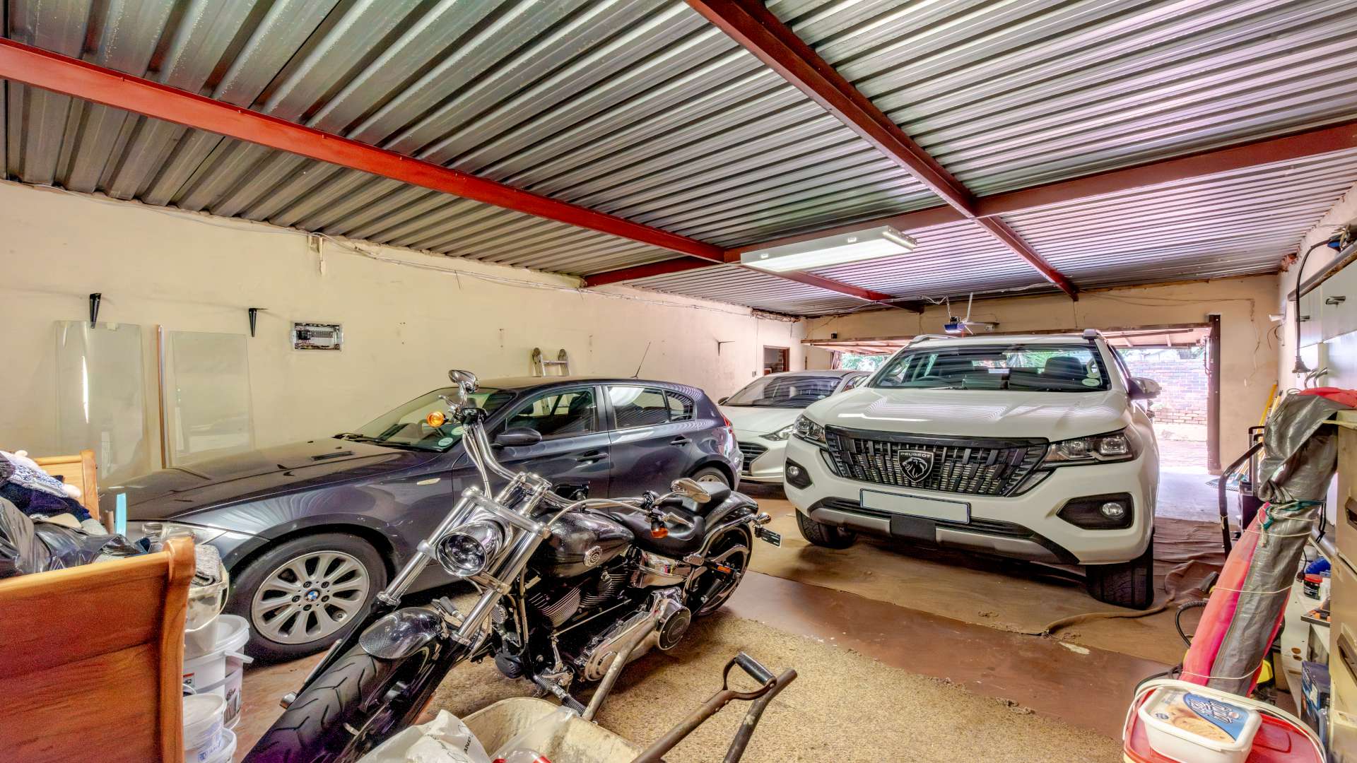 Parking is a dream with a tandem four-car garage and ample additional space for more than four vehicles, 6 foot container and wendy house.