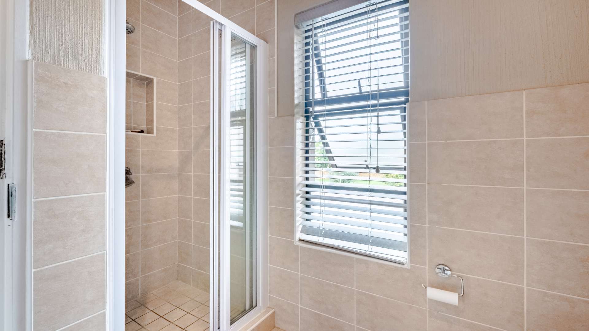 Sunlight streams through sleek aluminum window frames, giving the entire home a bright, contemporary feel.
