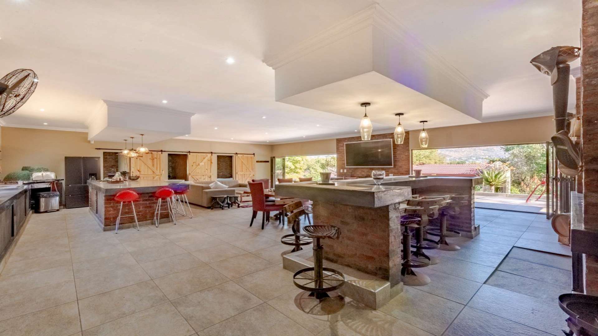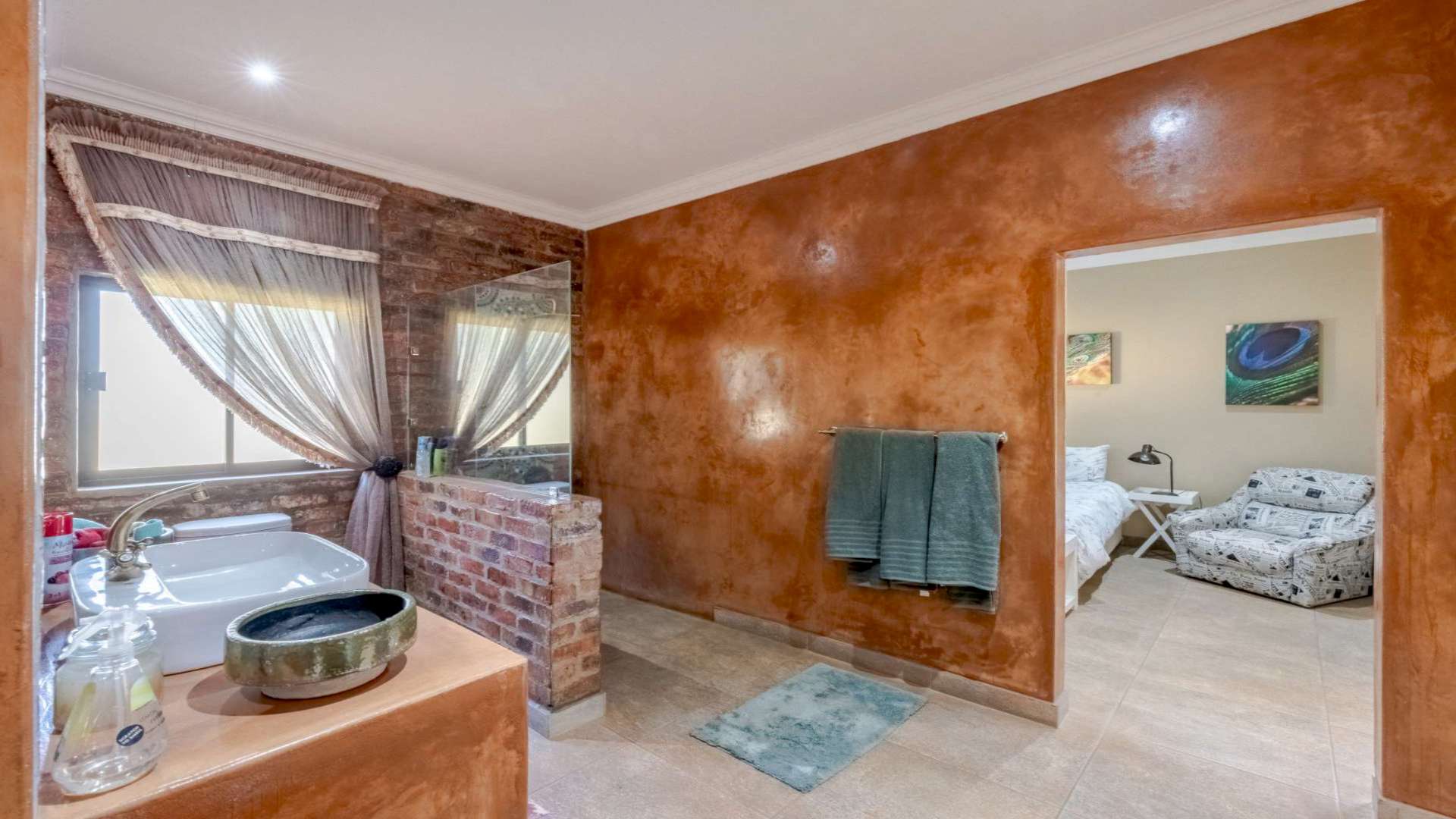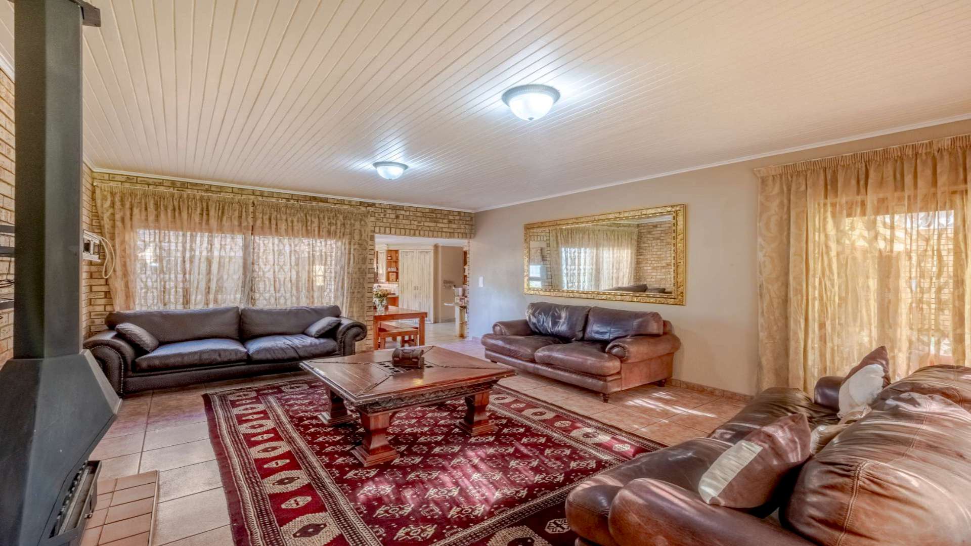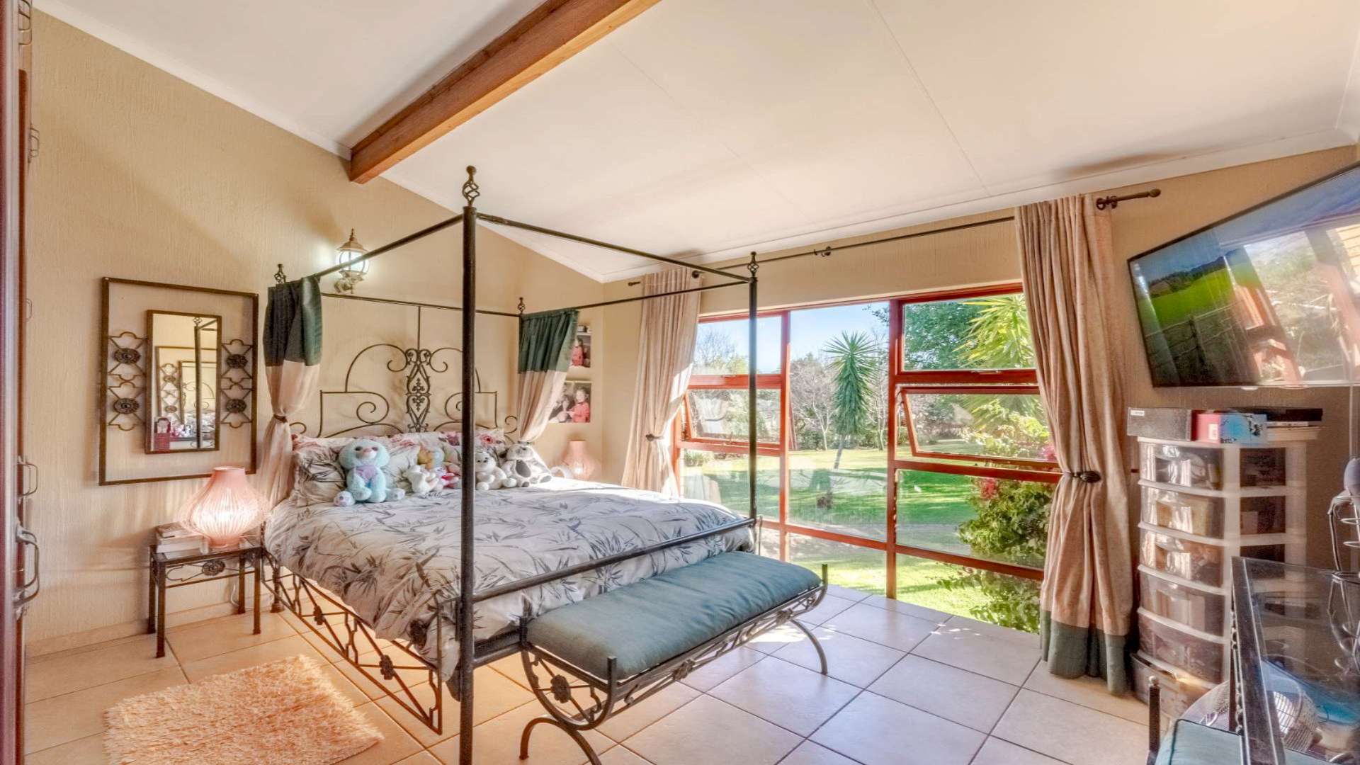 The kitchen is a chef’s dream, offering ample cupboard and workspace, a gas stove and hob, large pantry, scullery, and laundry.