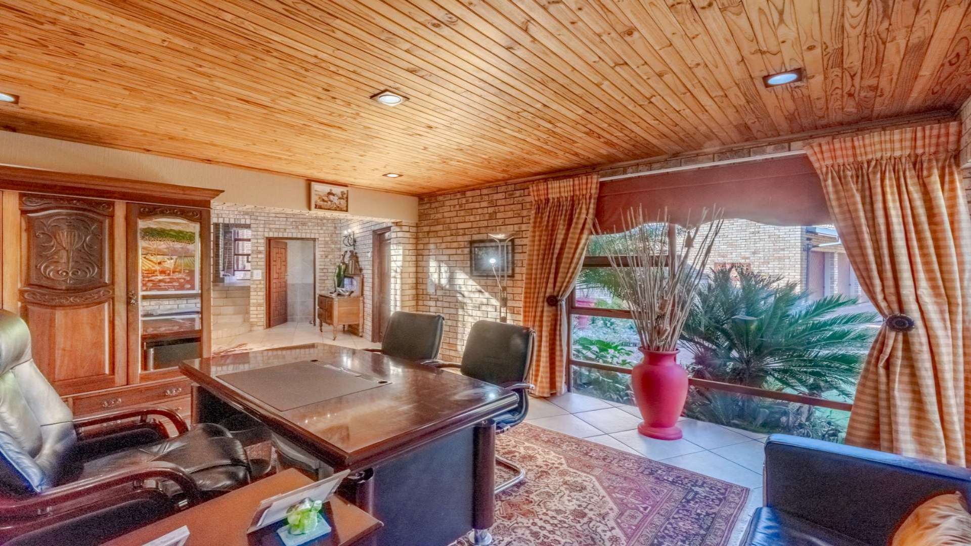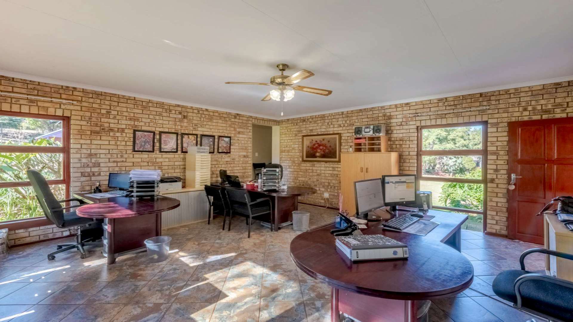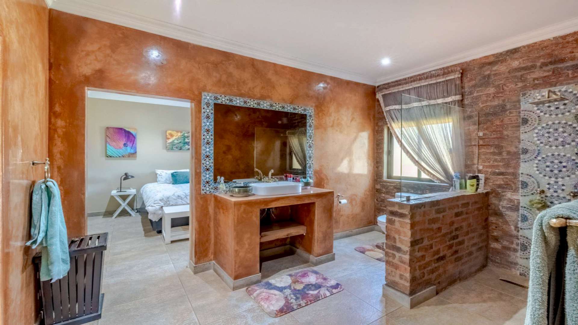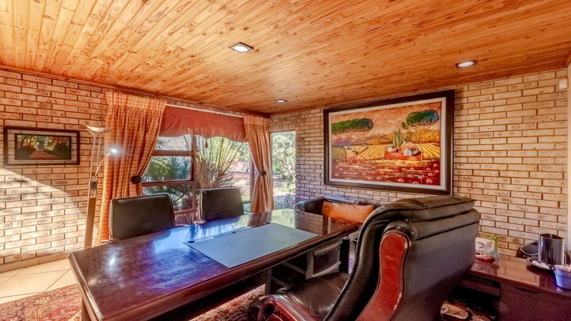 The kitchen is a chef’s dream, offering ample cupboard and workspace, a gas stove and hob, large pantry, scullery, and laundry.