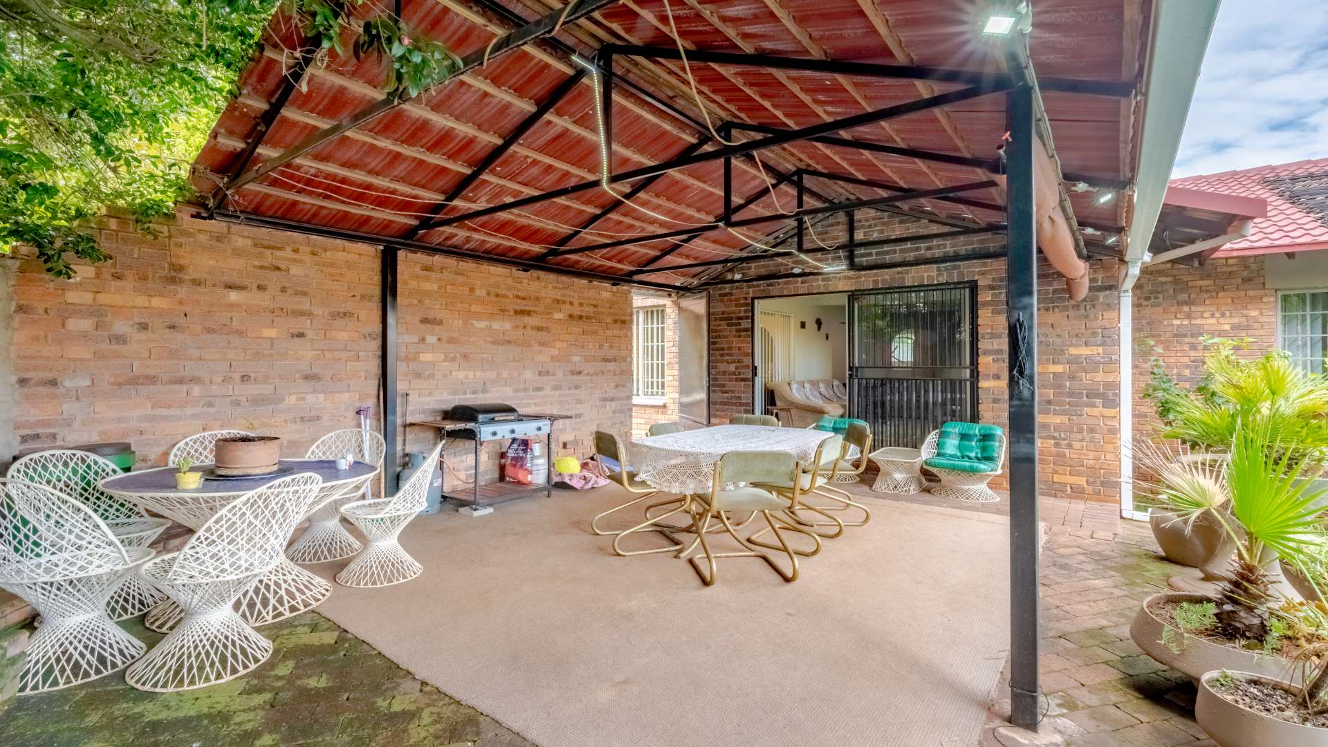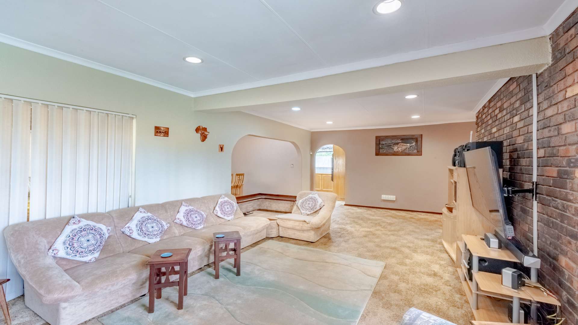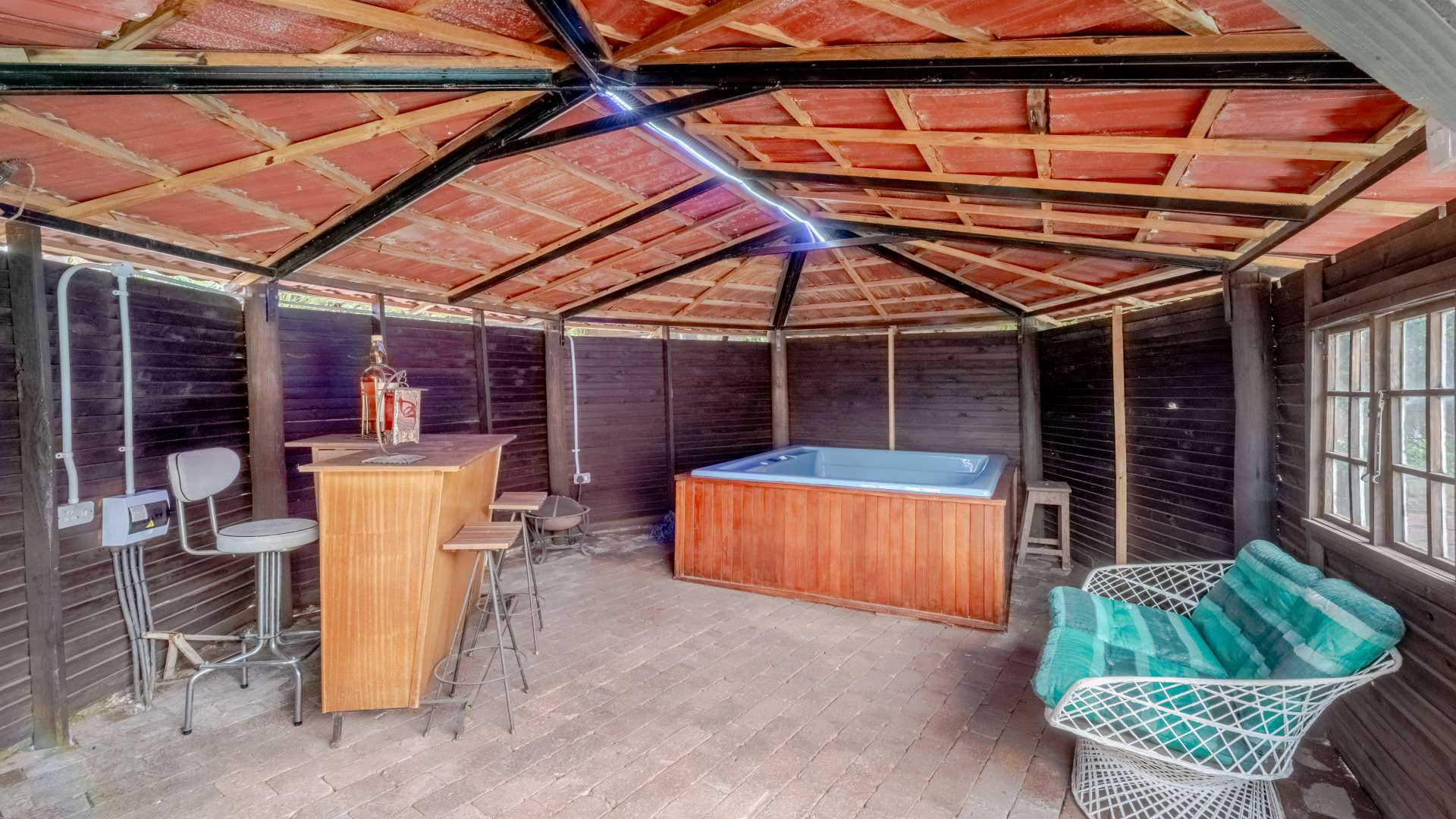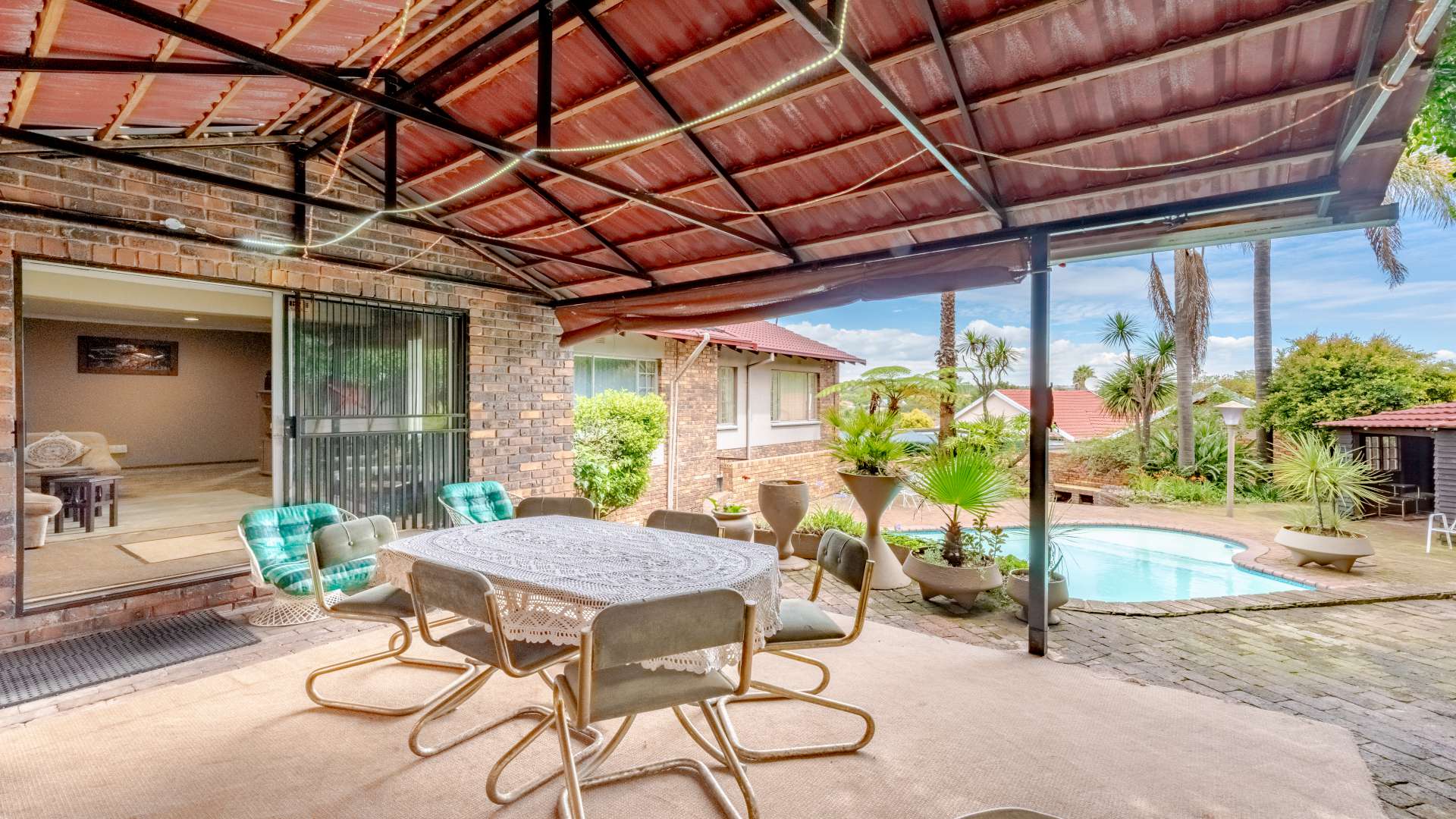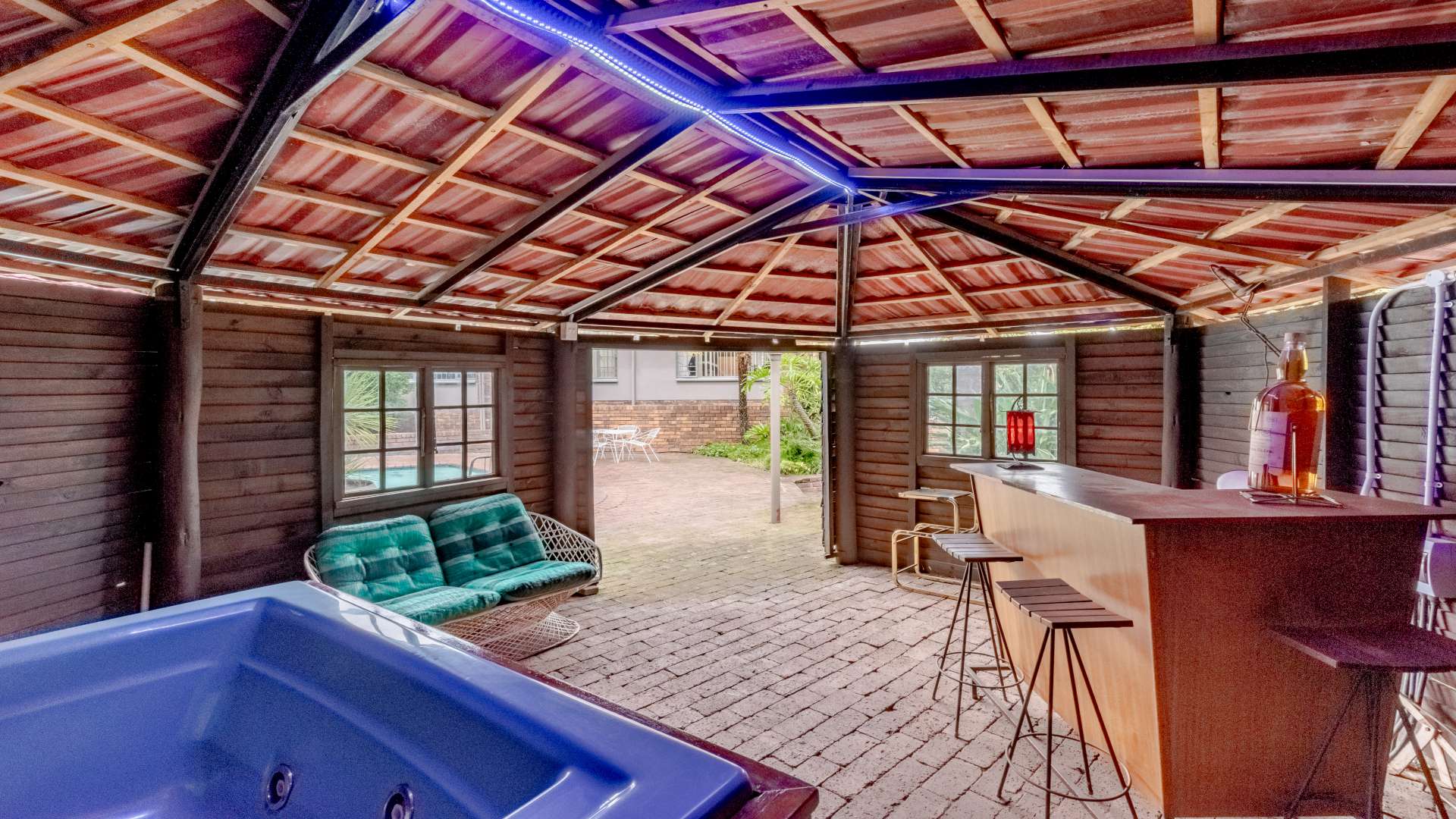 Outdoor living is just as impressive. The property features a heated swimming pool, a jacuzzi set within the lapa, and a unique conversation pit braai area, making it perfect for entertaining friends and family all year round.
