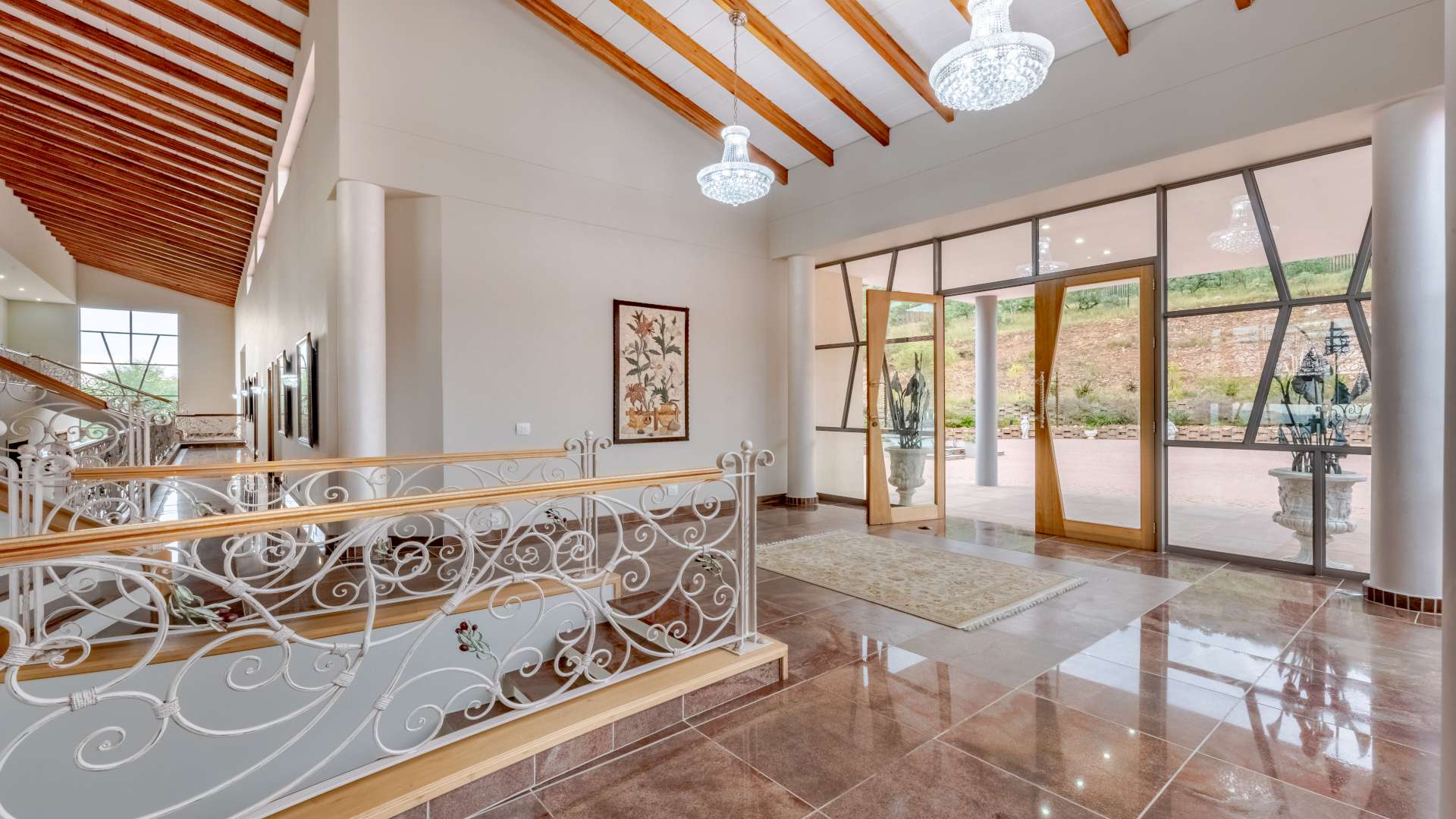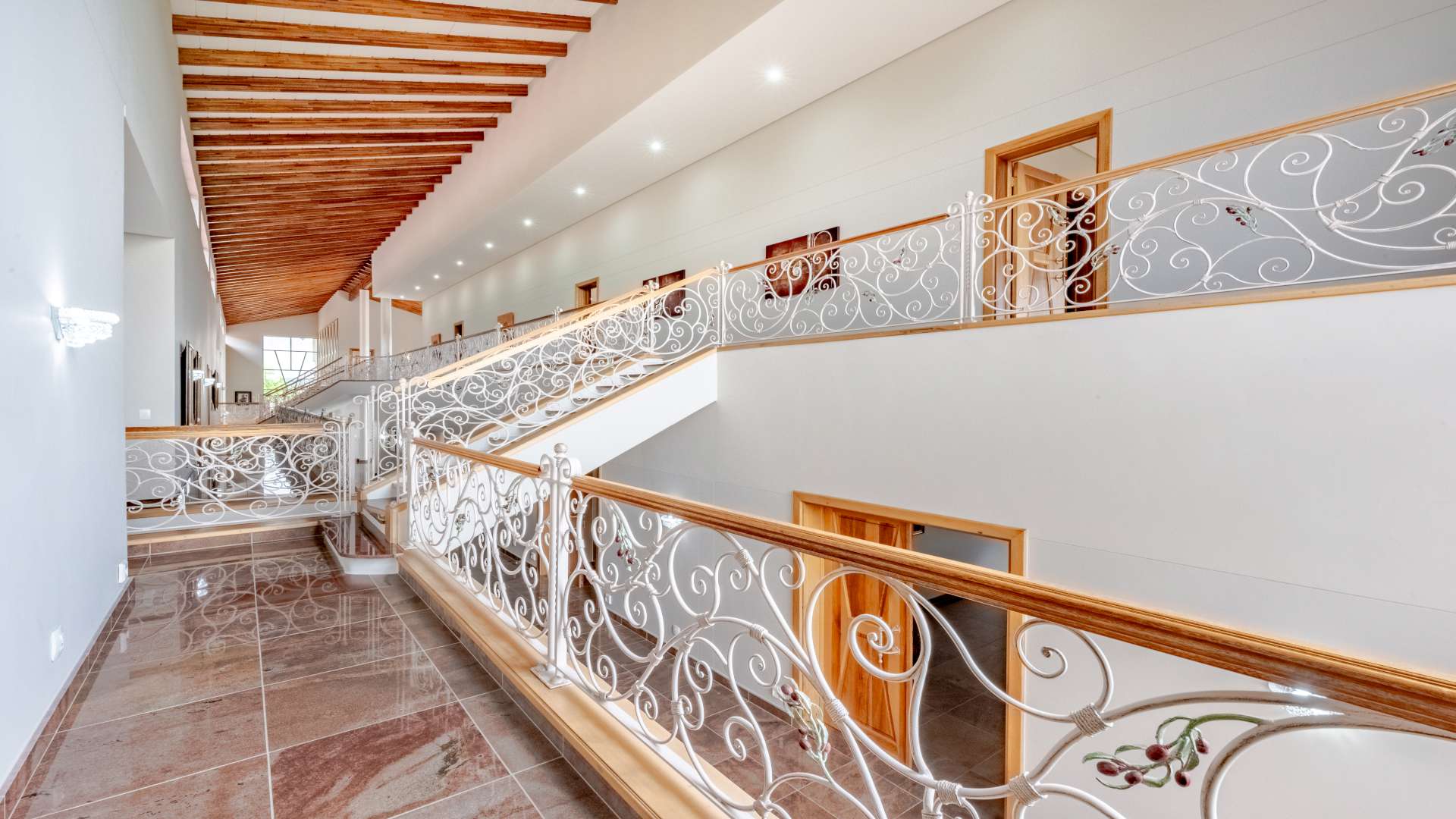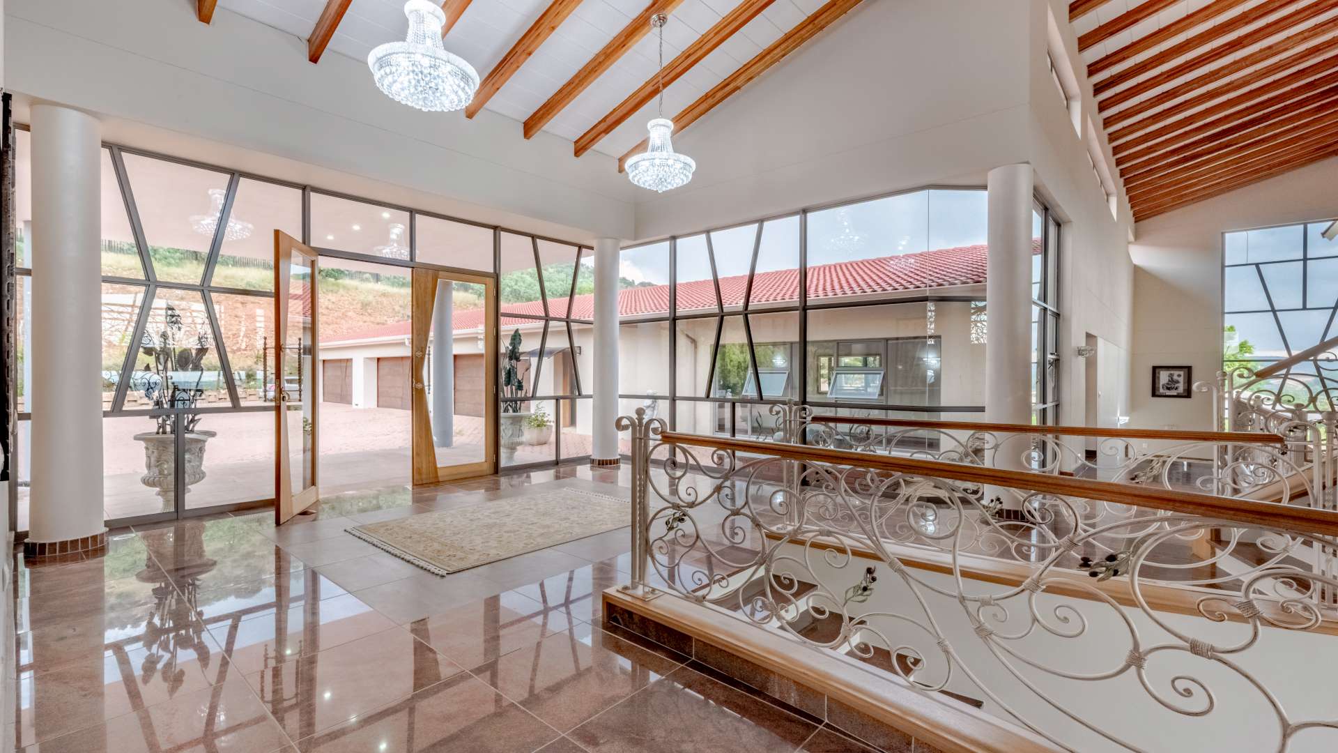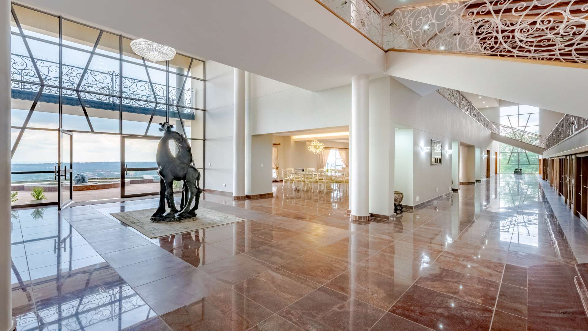 Step through the doors and into a luminous double-volume entrance hall, where an elegant staircase rises with quiet confidence, setting the tone for what lies beyond. Light dances effortlessly through the interiors, illuminating expansive living spaces where every window frames a view worth pausing for.