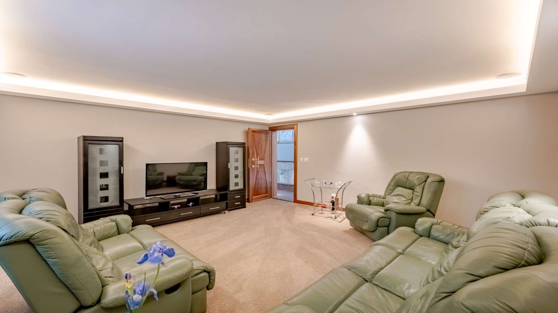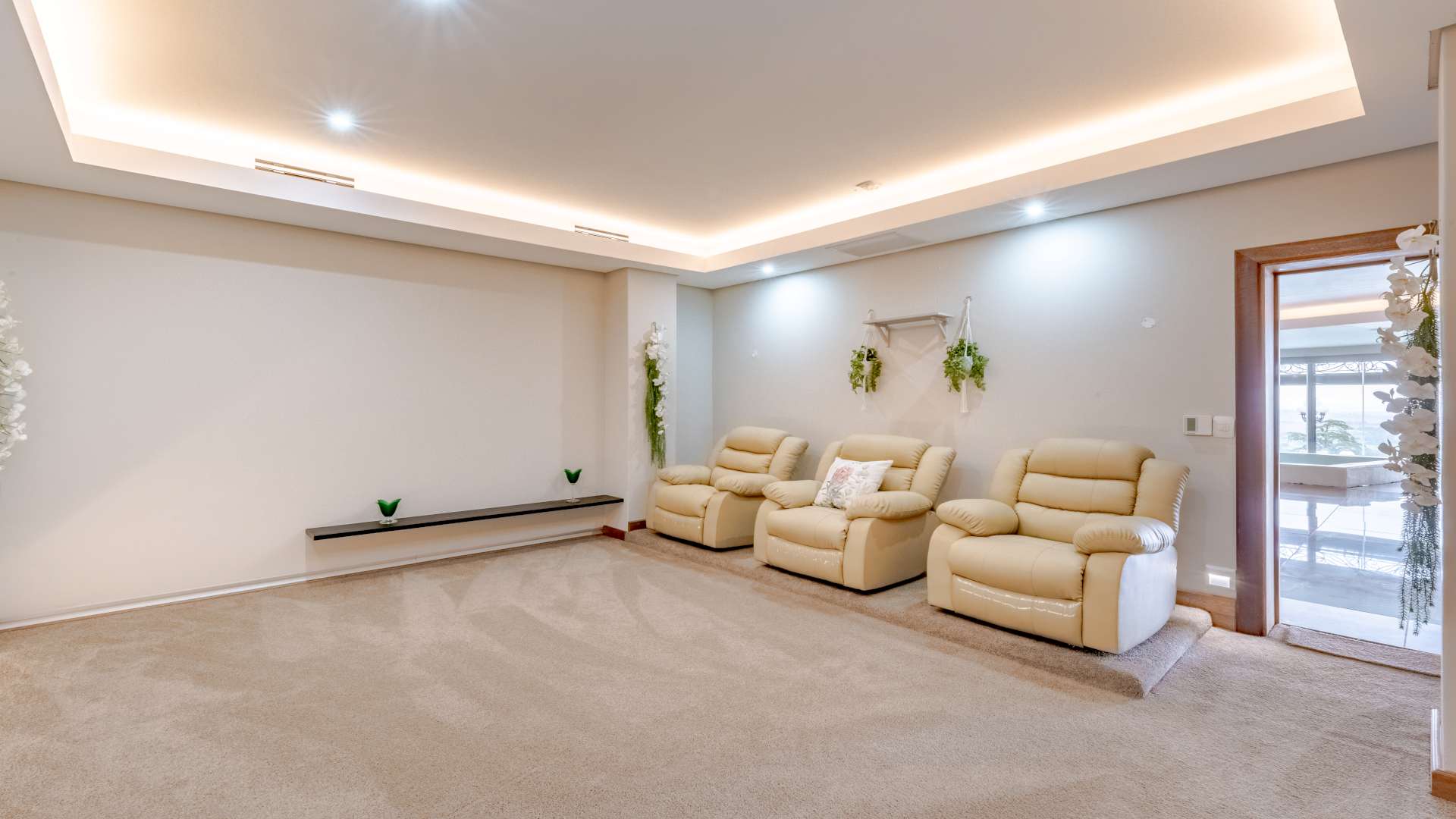 • Wellness & Entertainment Retreat: A dedicated indulgence wing awaits, featuring a tranquil spa area with its own kitchenette, a heated Roman bath, a massage room, a stylish bathroom with shower facilities, and a private cinema room for immersive movie nights.