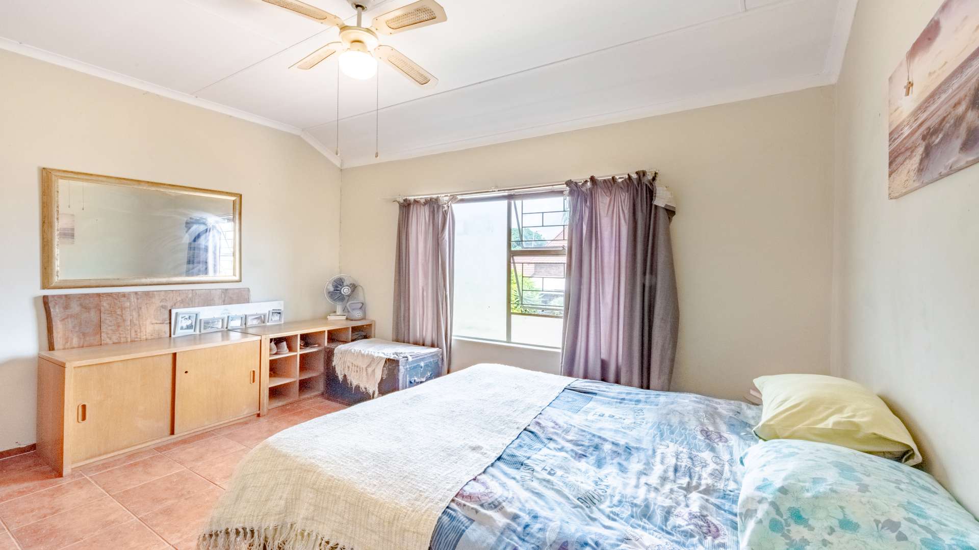 - Generous main bedroom with ceiling fan, built-in cupboards & curtain rod