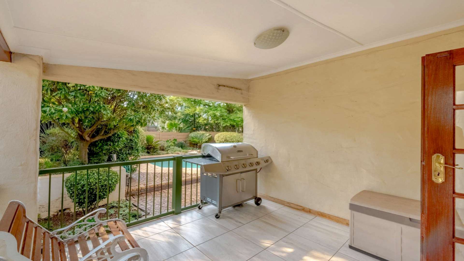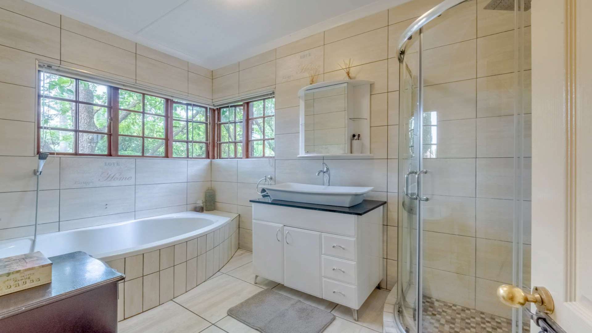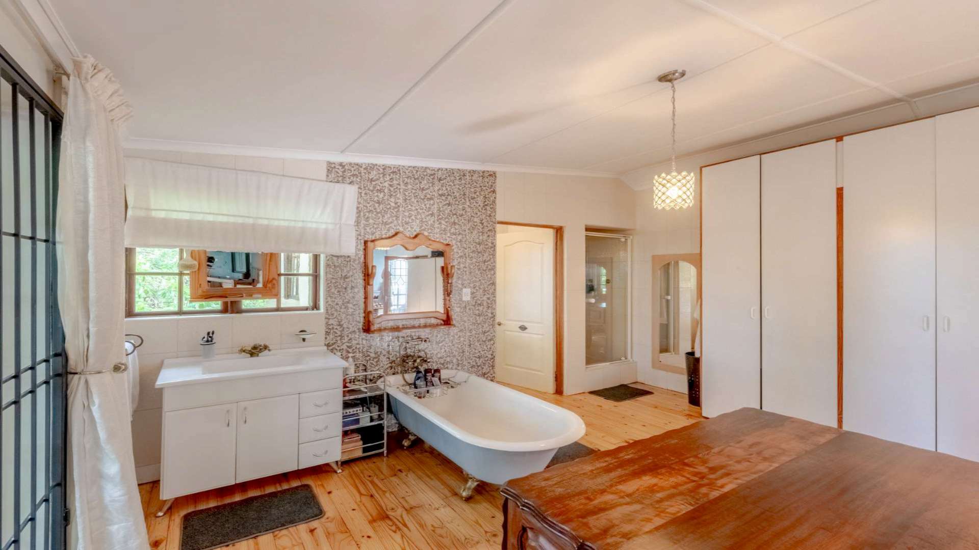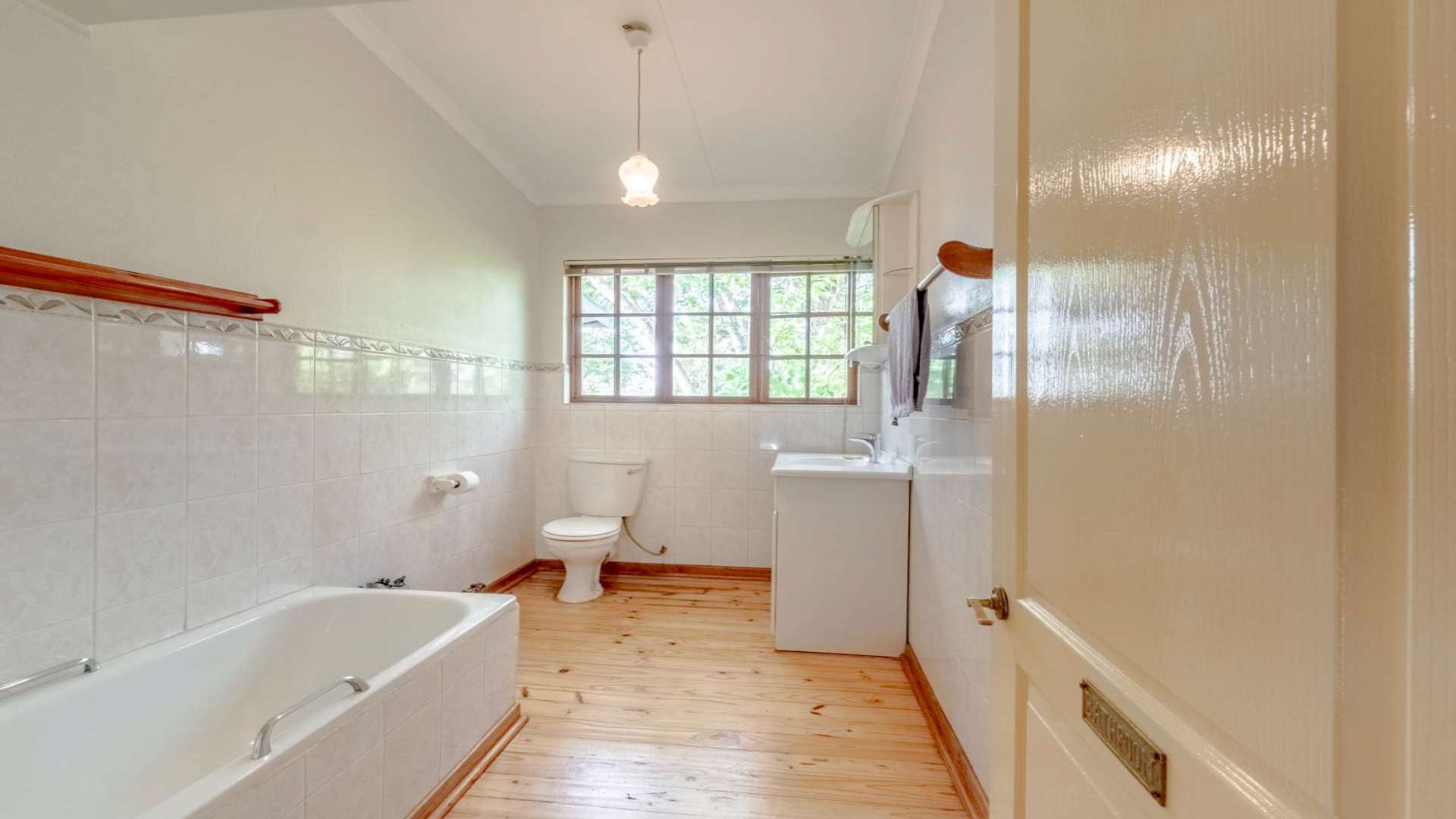 Boasting three generously sized bedrooms: two downstairs with laminated floors and built in cupboards, the upstairs main bedroom is a retreat unto itself and offers an open plan bathroom with shower, bath, toilet and basin plus a private balcony overlooking the stunning colorful garden.