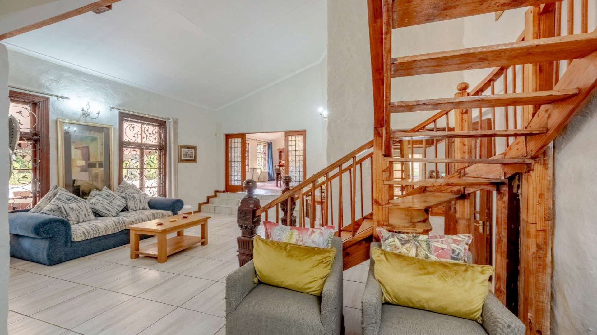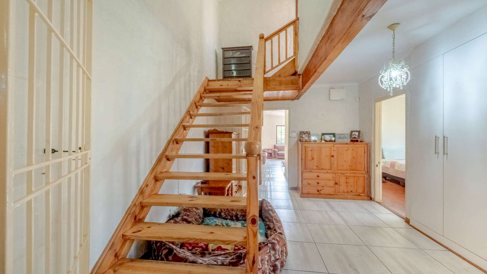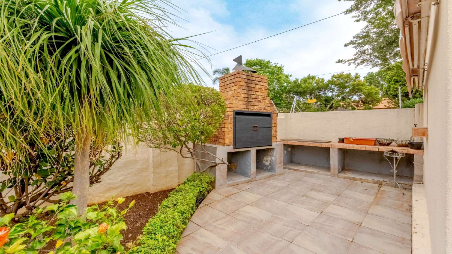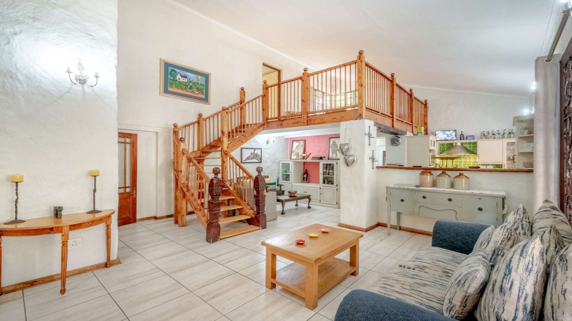 Boasting three generously sized bedrooms: two downstairs with laminated floors and built in cupboards, the upstairs main bedroom is a retreat unto itself and offers an open plan bathroom with shower, bath, toilet and basin plus a private balcony overlooking the stunning colorful garden.