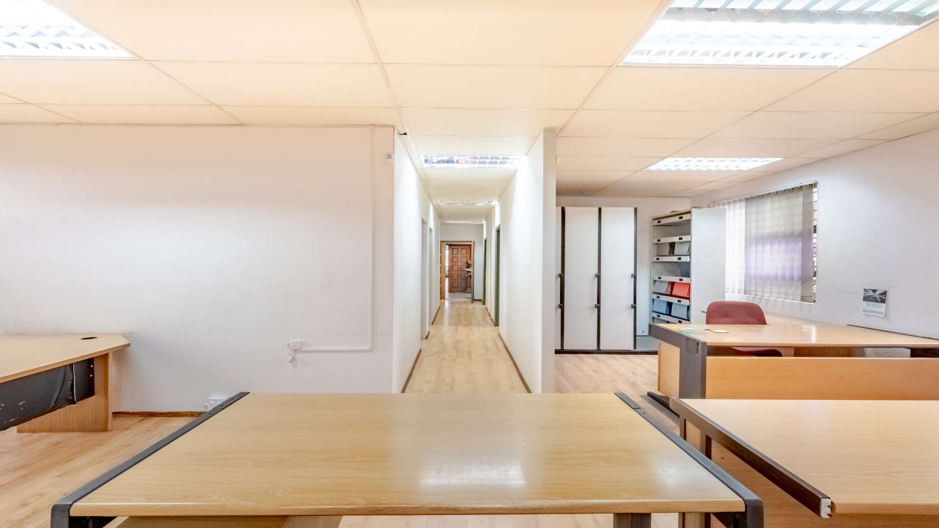 The office measures approximately 99–100m² and is thoughtfully configured to suit a variety of business needs. It includes a spacious open-plan workspace complemented by three private offices, allowing for both collaboration and focused work. Large windows invite in abundant natural light, creating an inviting and productive atmosphere throughout.