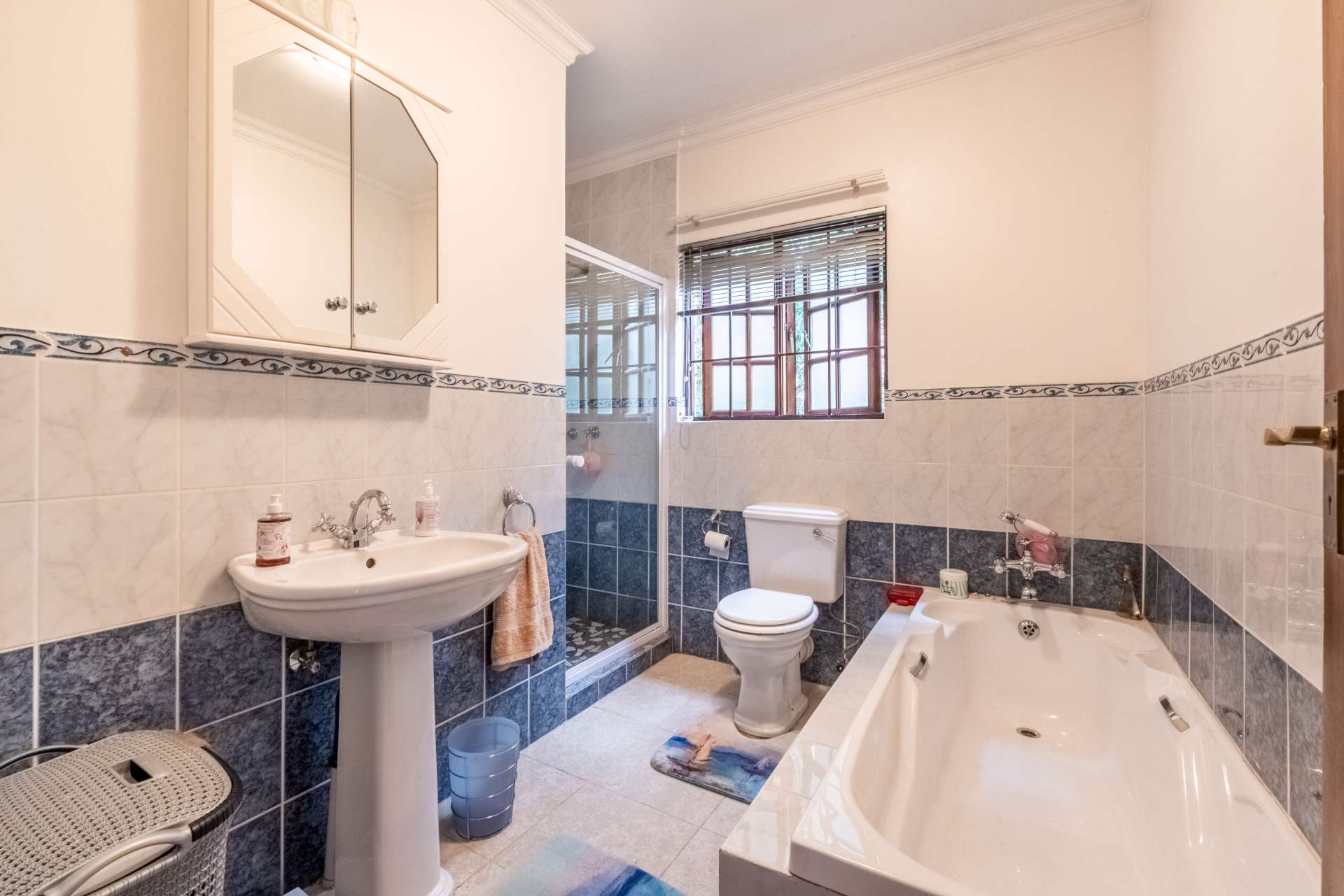 Bathroom 2 Tiled Floors, Basin, Bath, Shower, Blinds, Toilet