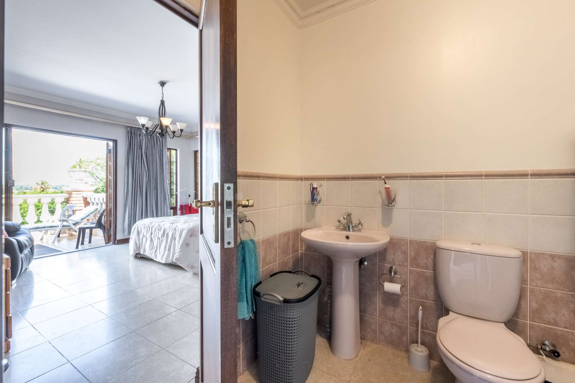 It offers three sunny, tiled bedrooms, main with walk in dressing room, balcony and en suite full bathroom.