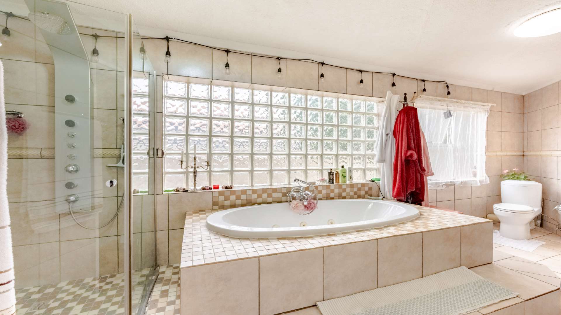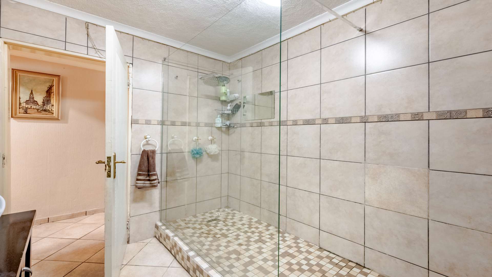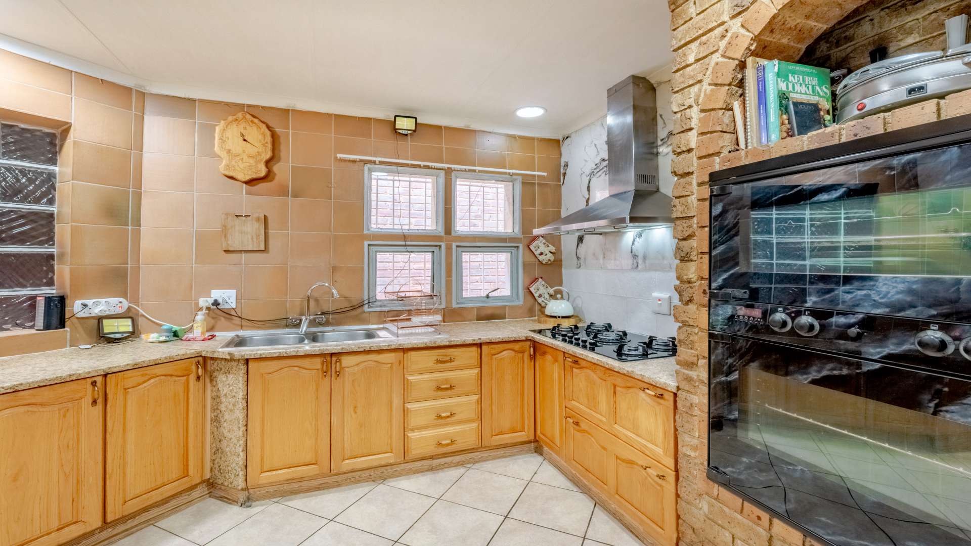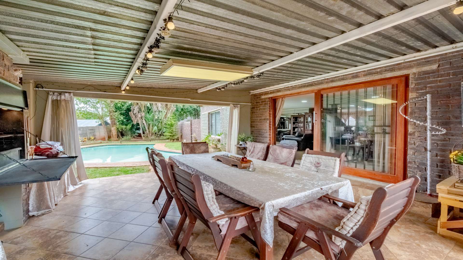 Outside, the magic continues: A covered patio with a built-in braai invites long summer evenings with friends, while the sparkling swimming pool promises endless fun and relaxation. The stand provides plenty of space for kids to play, pets to roam, and memories to be made.