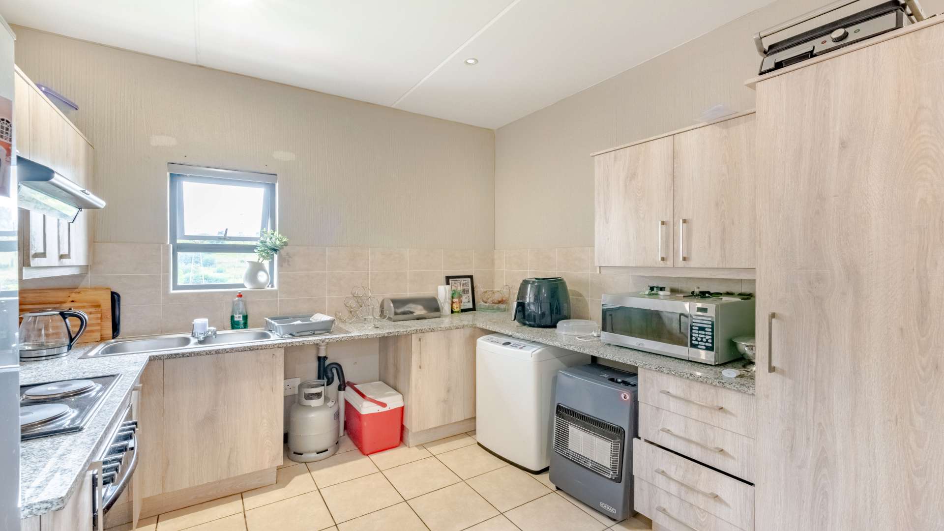 The kitchen is beautifully finished with modern fittings and thoughtful practicality, offering dedicated space for both a dishwasher and washing machine. It is designed for real life, not just good looks.