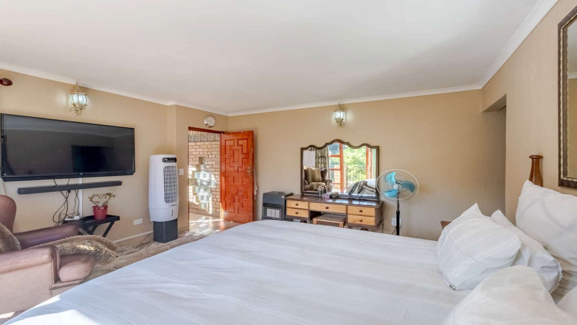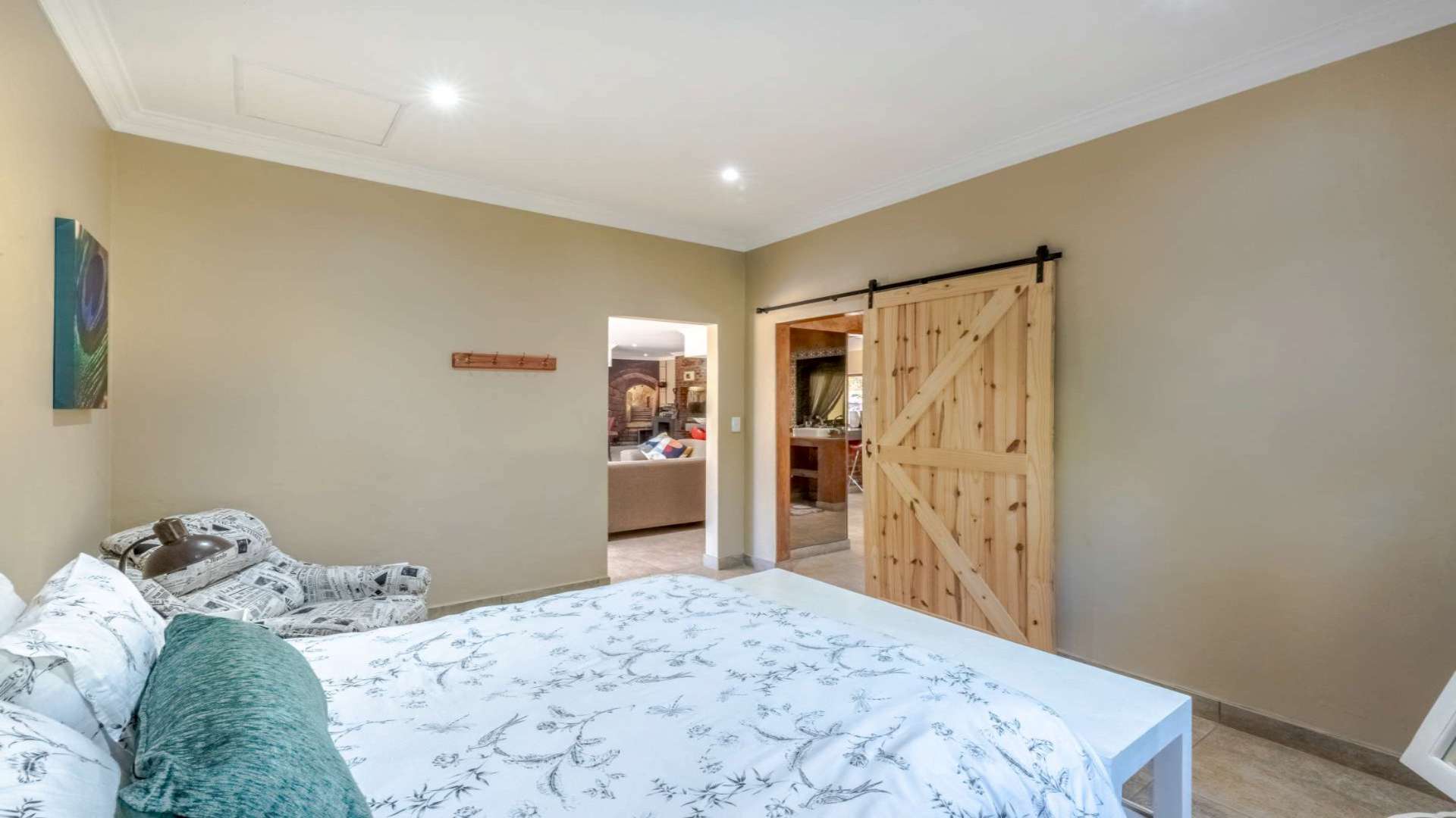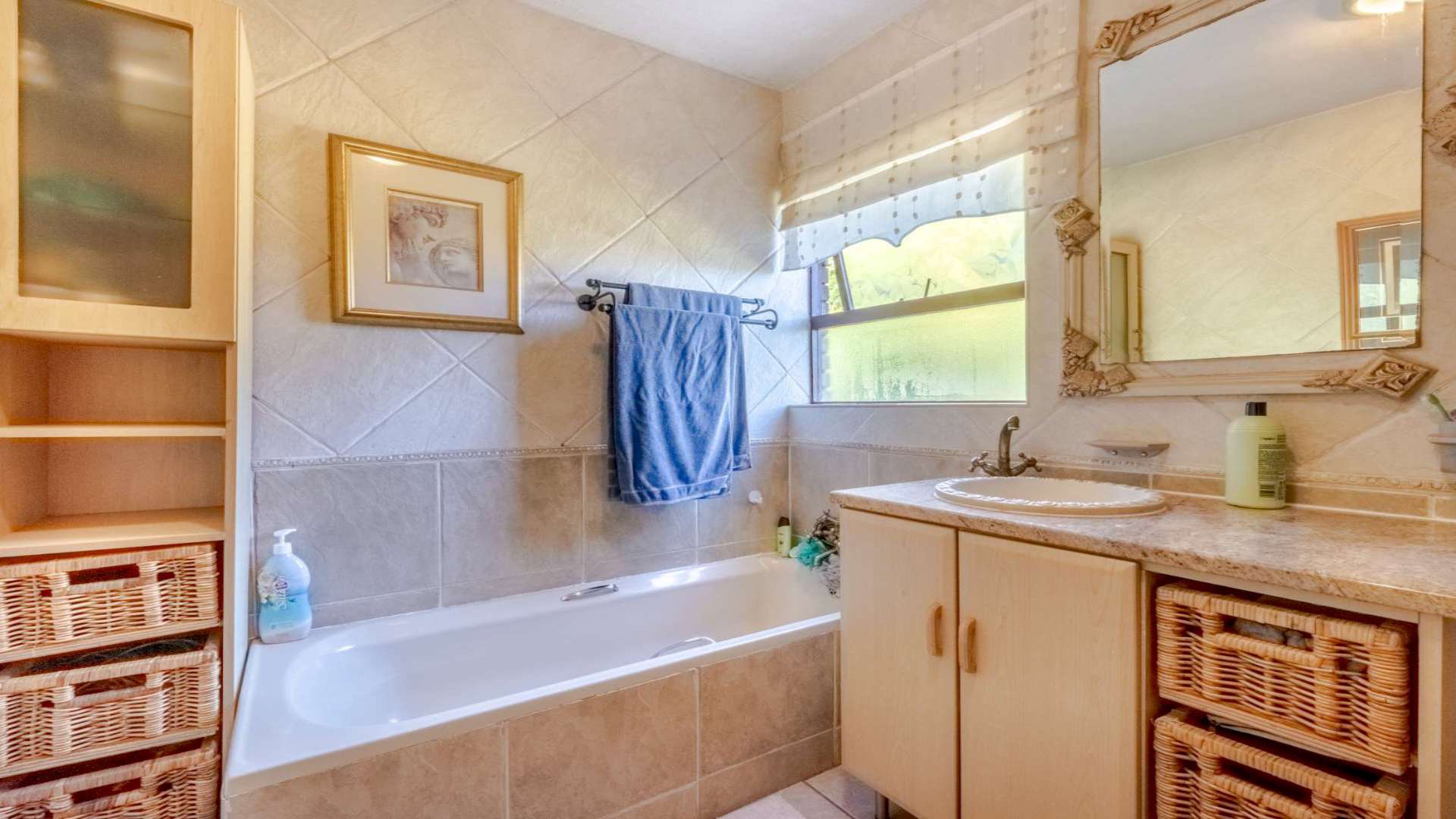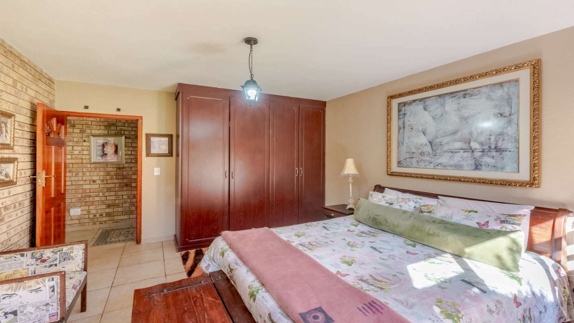 The kitchen is a chef’s dream, offering ample cupboard and workspace, a gas stove and hob, large pantry, scullery, and laundry.