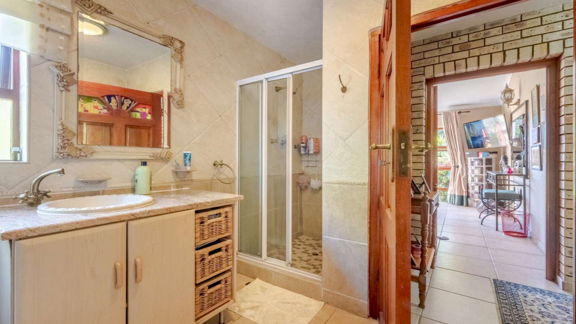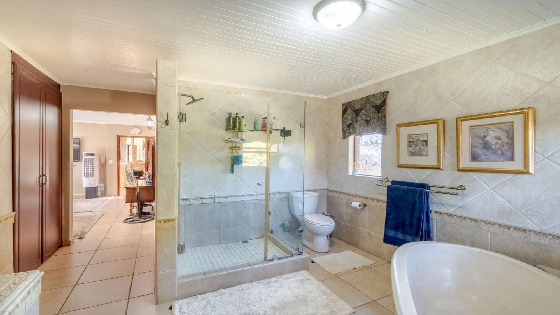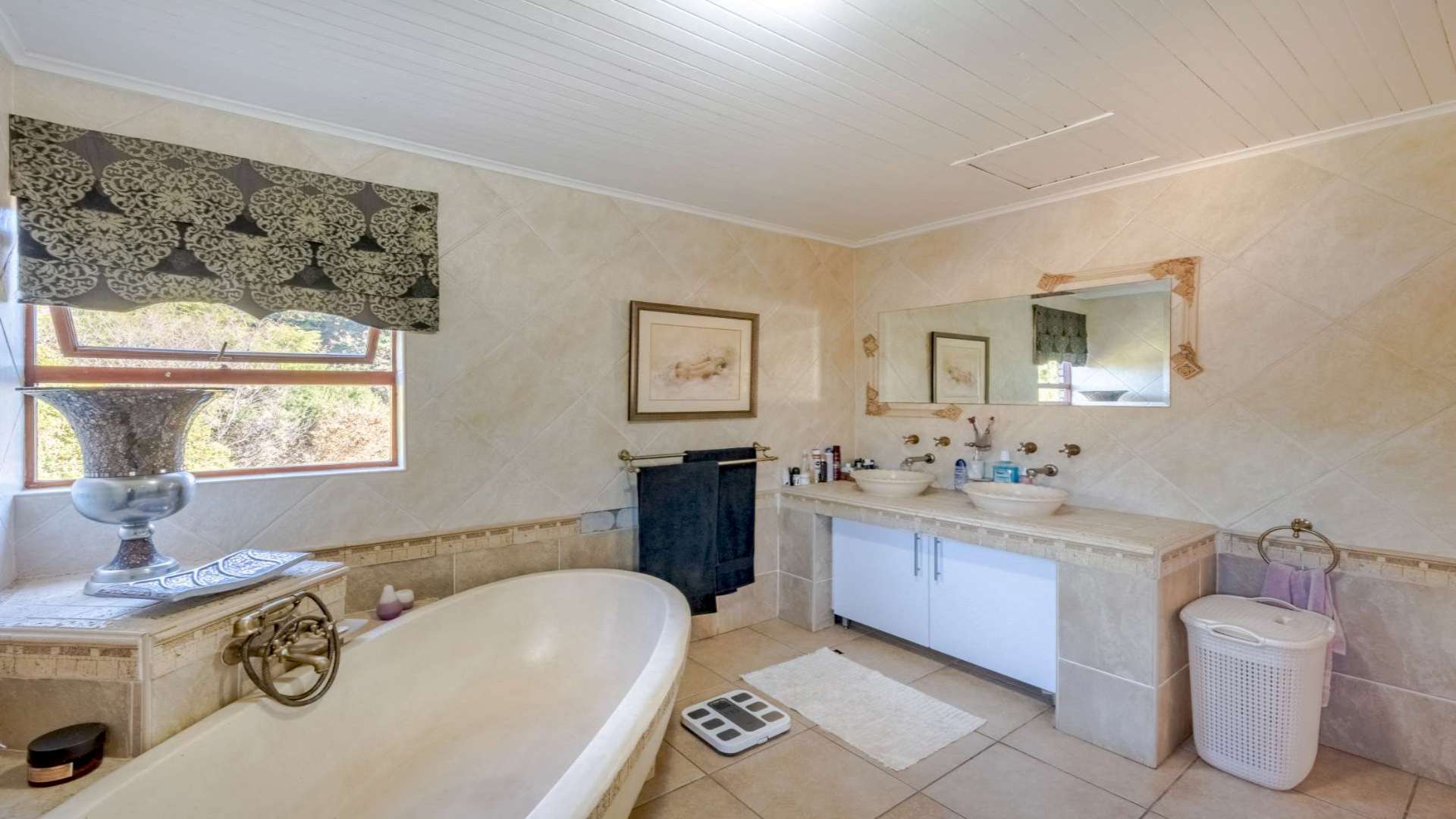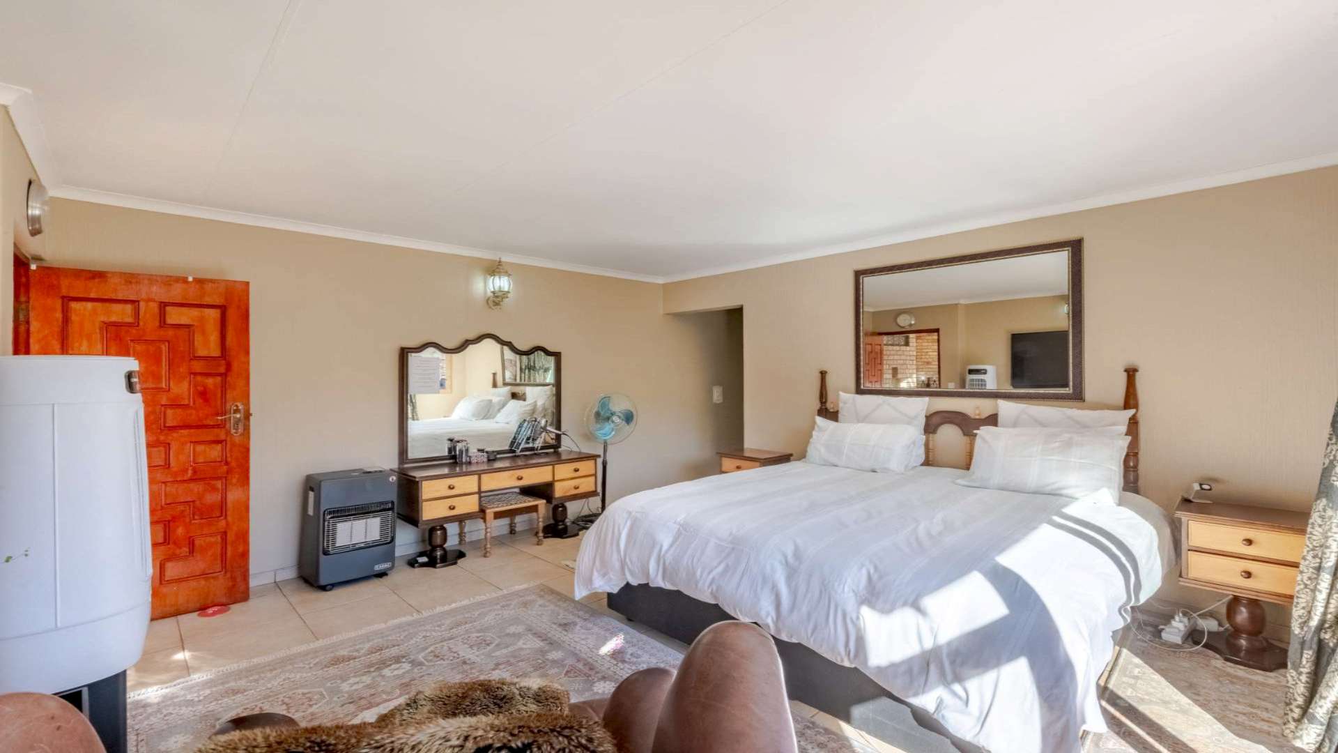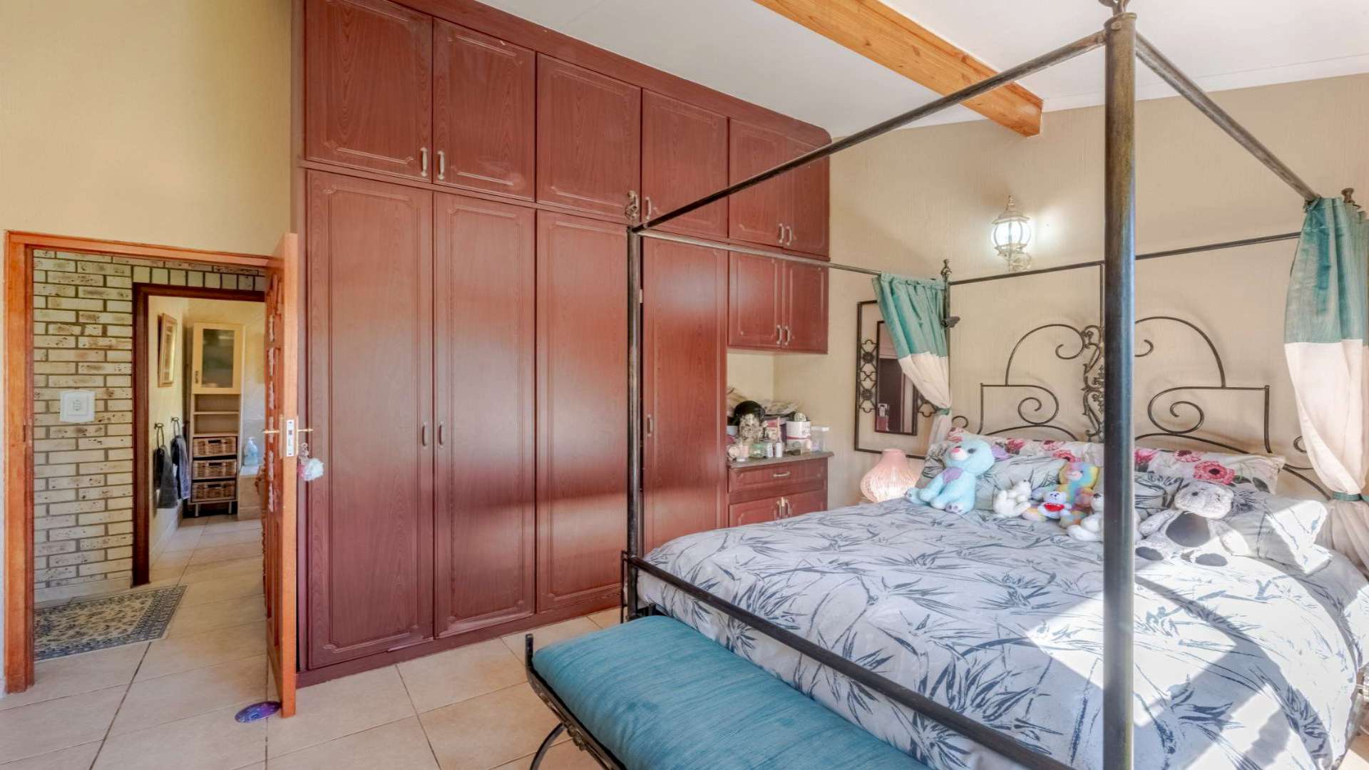 The kitchen is a chef’s dream, offering ample cupboard and workspace, a gas stove and hob, large pantry, scullery, and laundry.