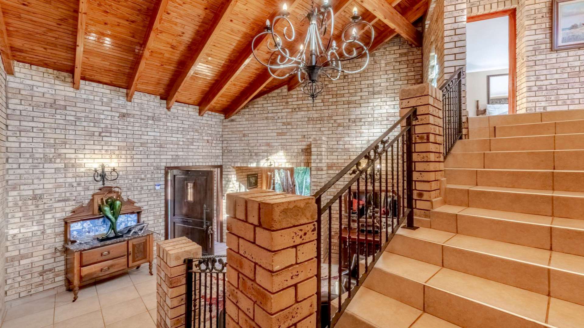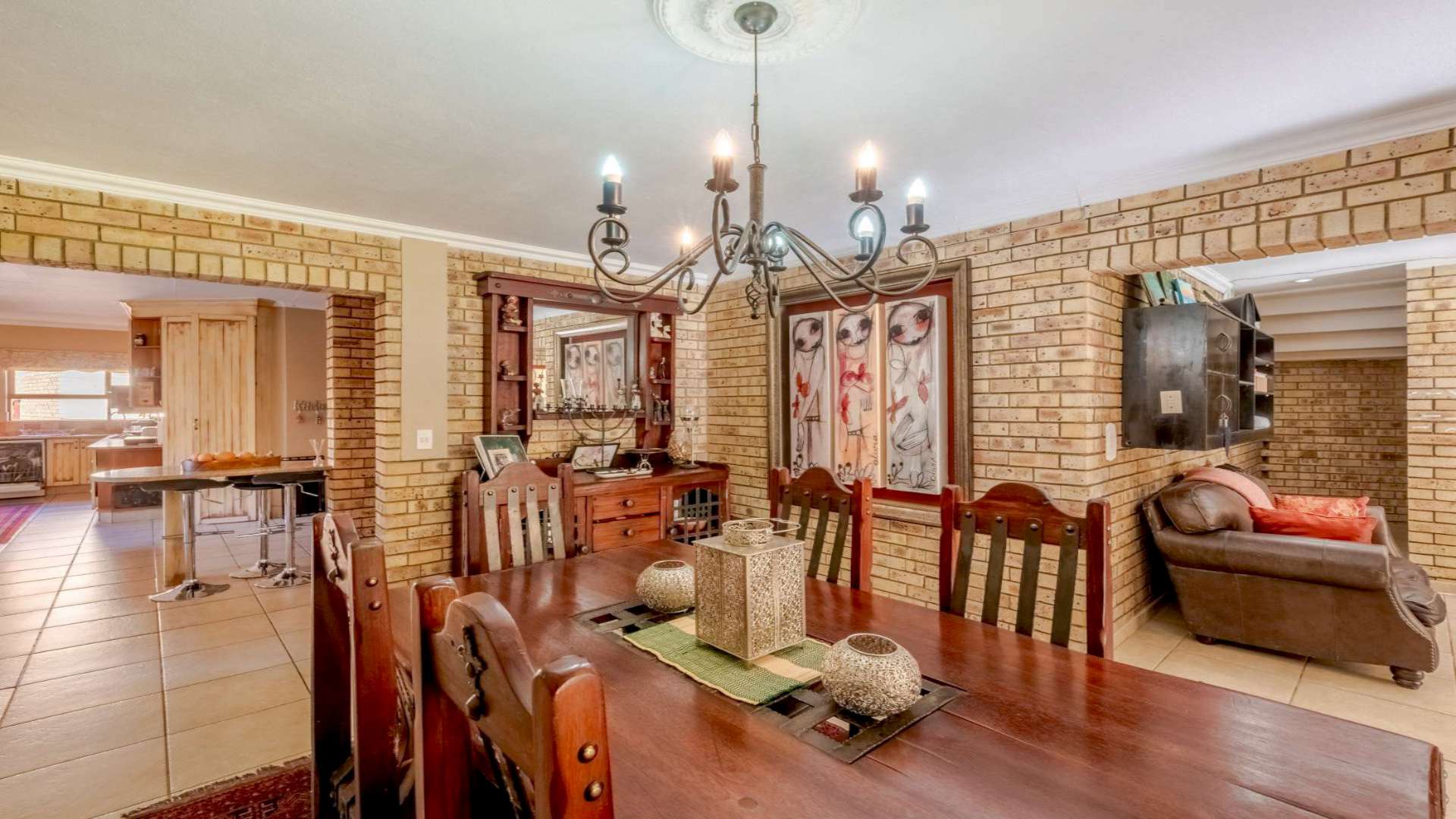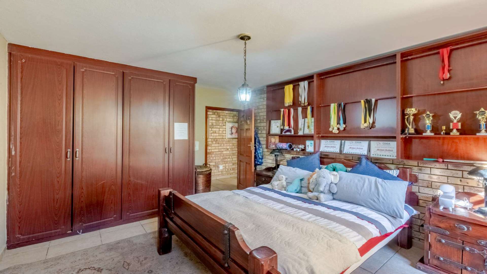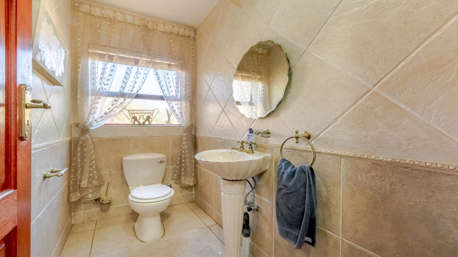 The kitchen is a chef’s dream, offering ample cupboard and workspace, a gas stove and hob, large pantry, scullery, and laundry.