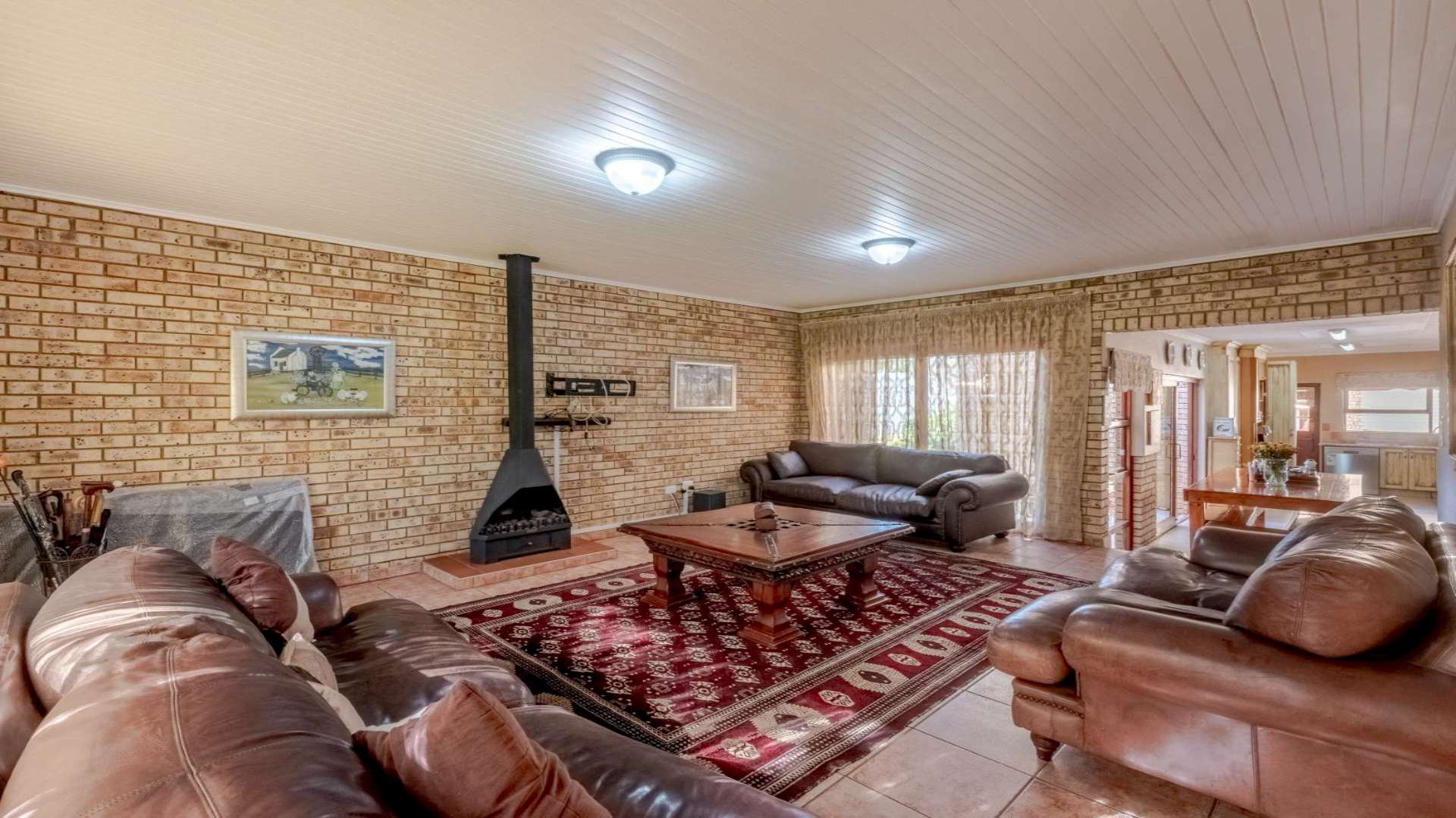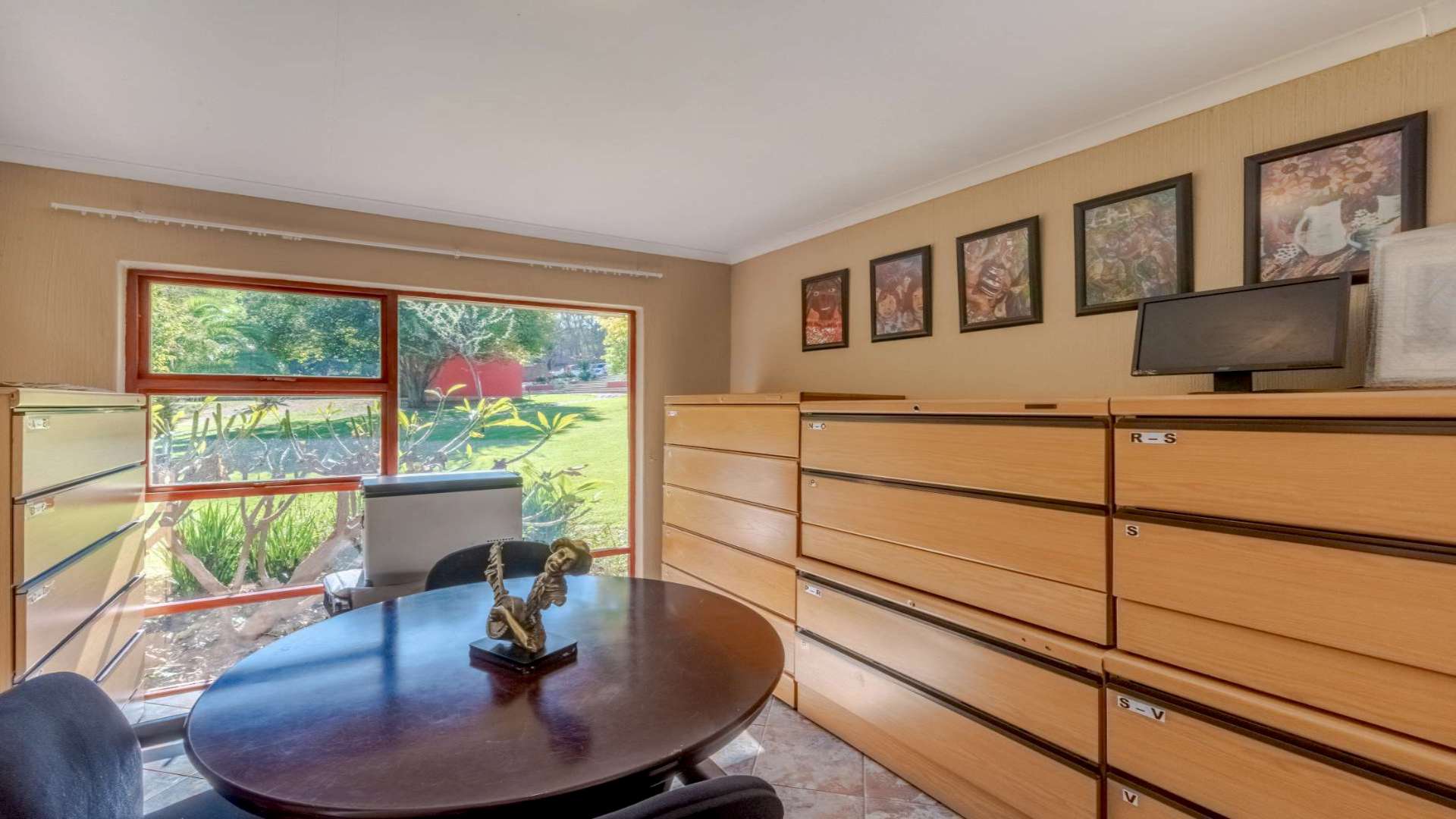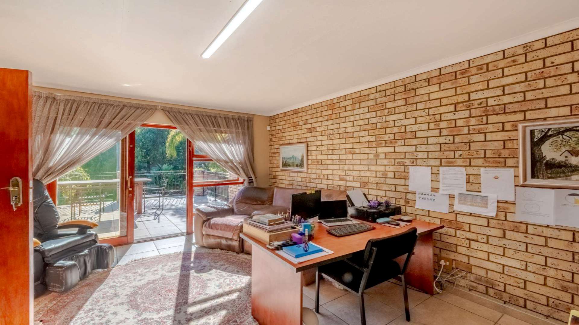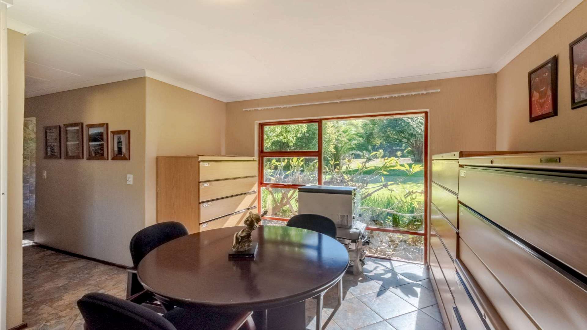 The kitchen is a chef’s dream, offering ample cupboard and workspace, a gas stove and hob, large pantry, scullery, and laundry.