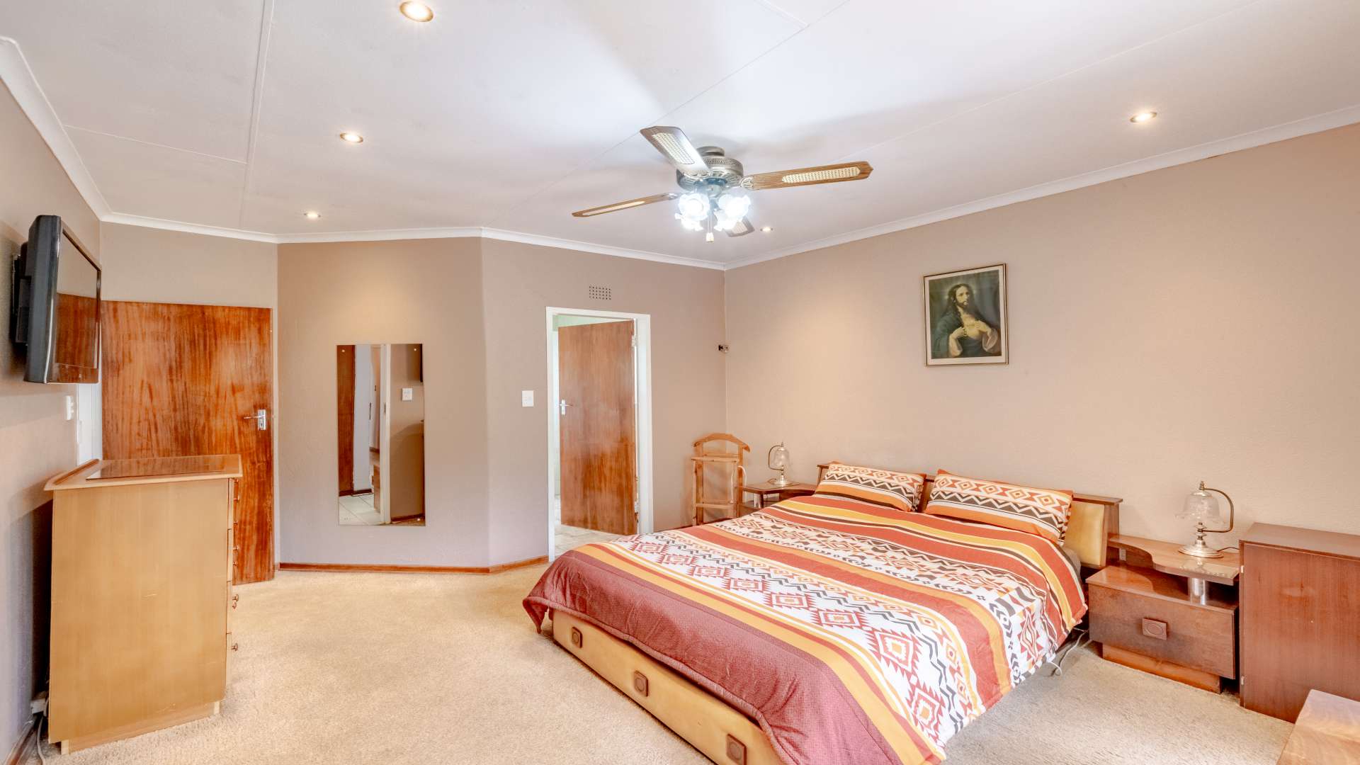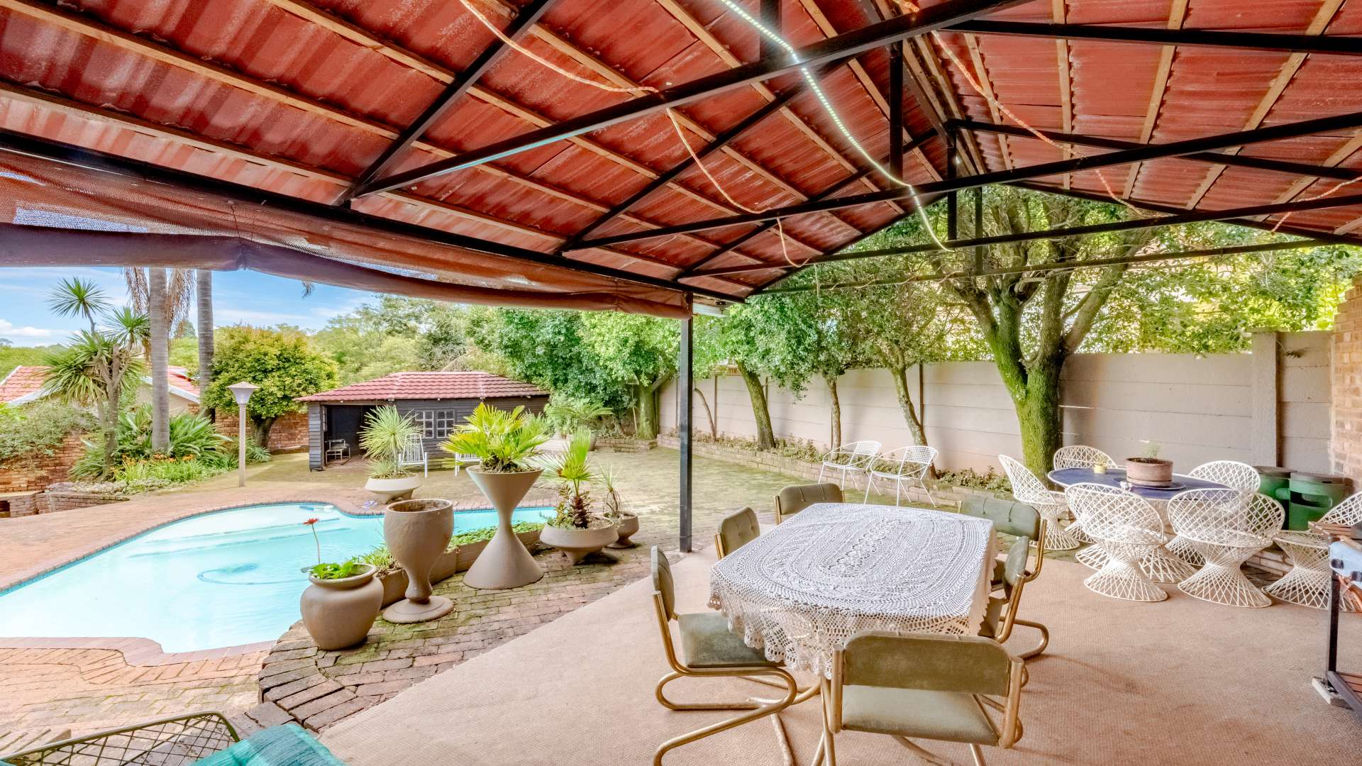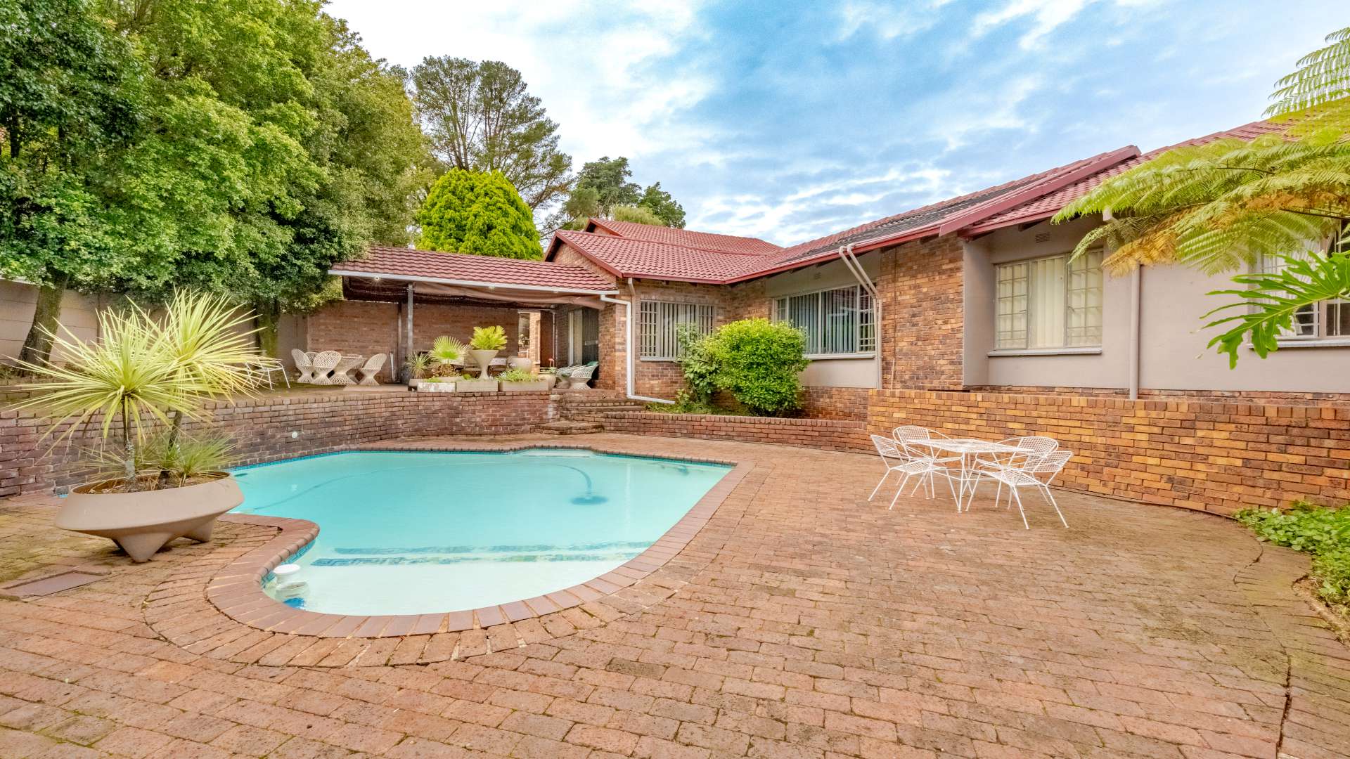 Outdoor living is just as impressive. The property features a heated swimming pool, a jacuzzi set within the lapa, and a unique conversation pit braai area, making it perfect for entertaining friends and family all year round.