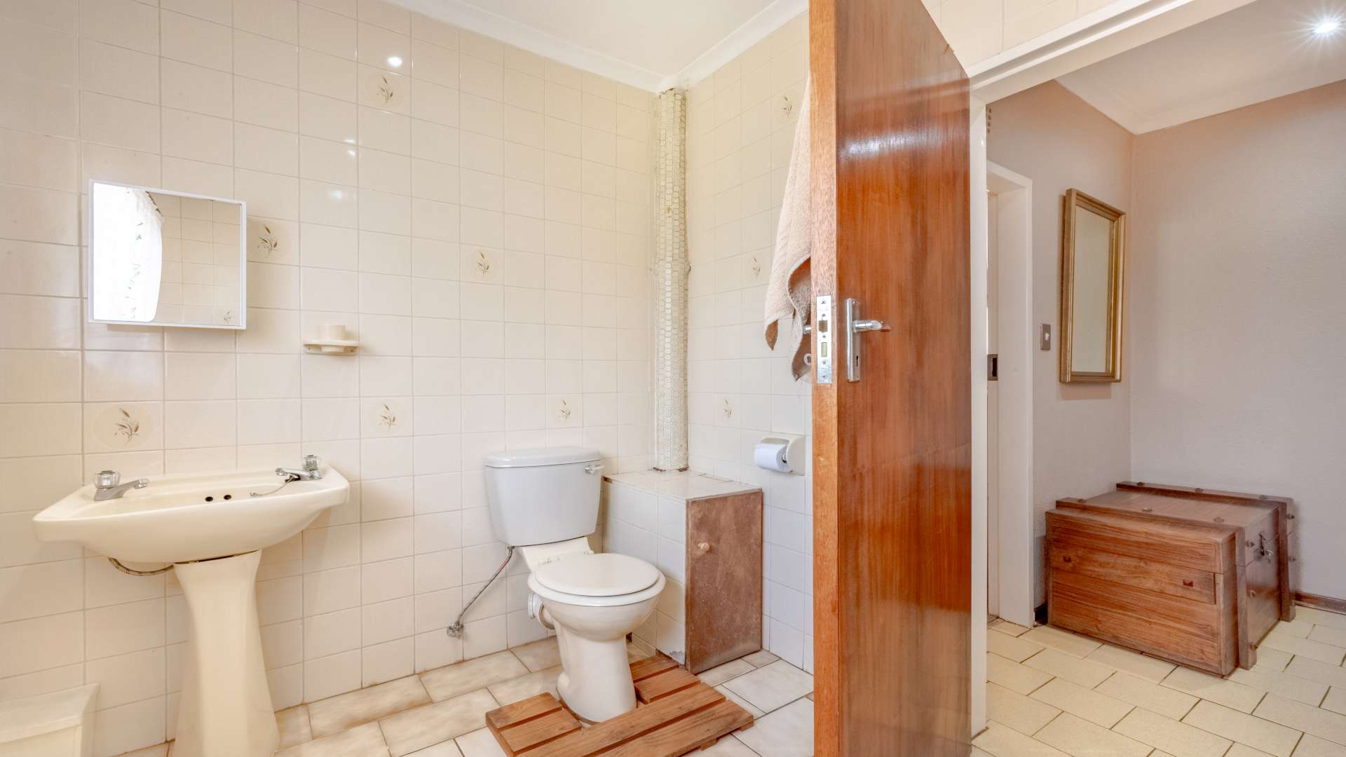 The current master bedroom includes an en-suite bathroom, while an additional full bathroom services the remaining bedrooms, complemented by a convenient guest toilet with basin.