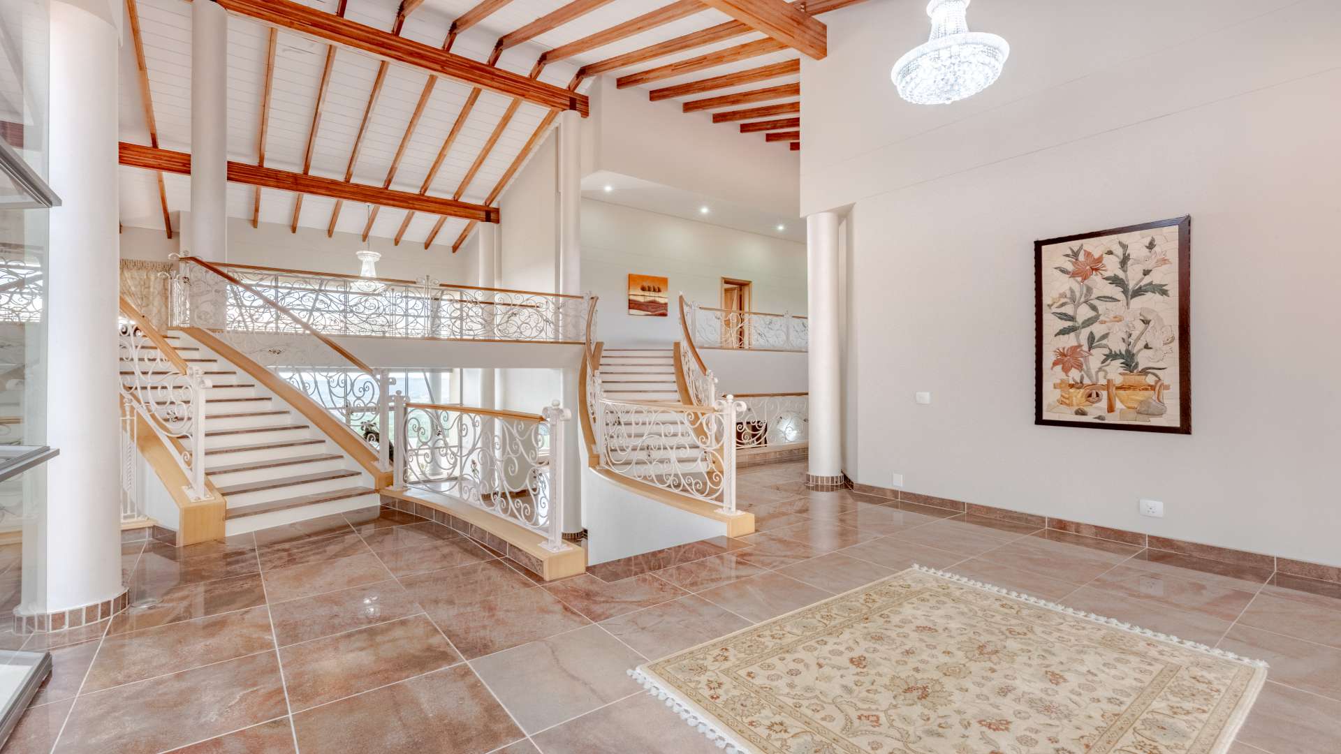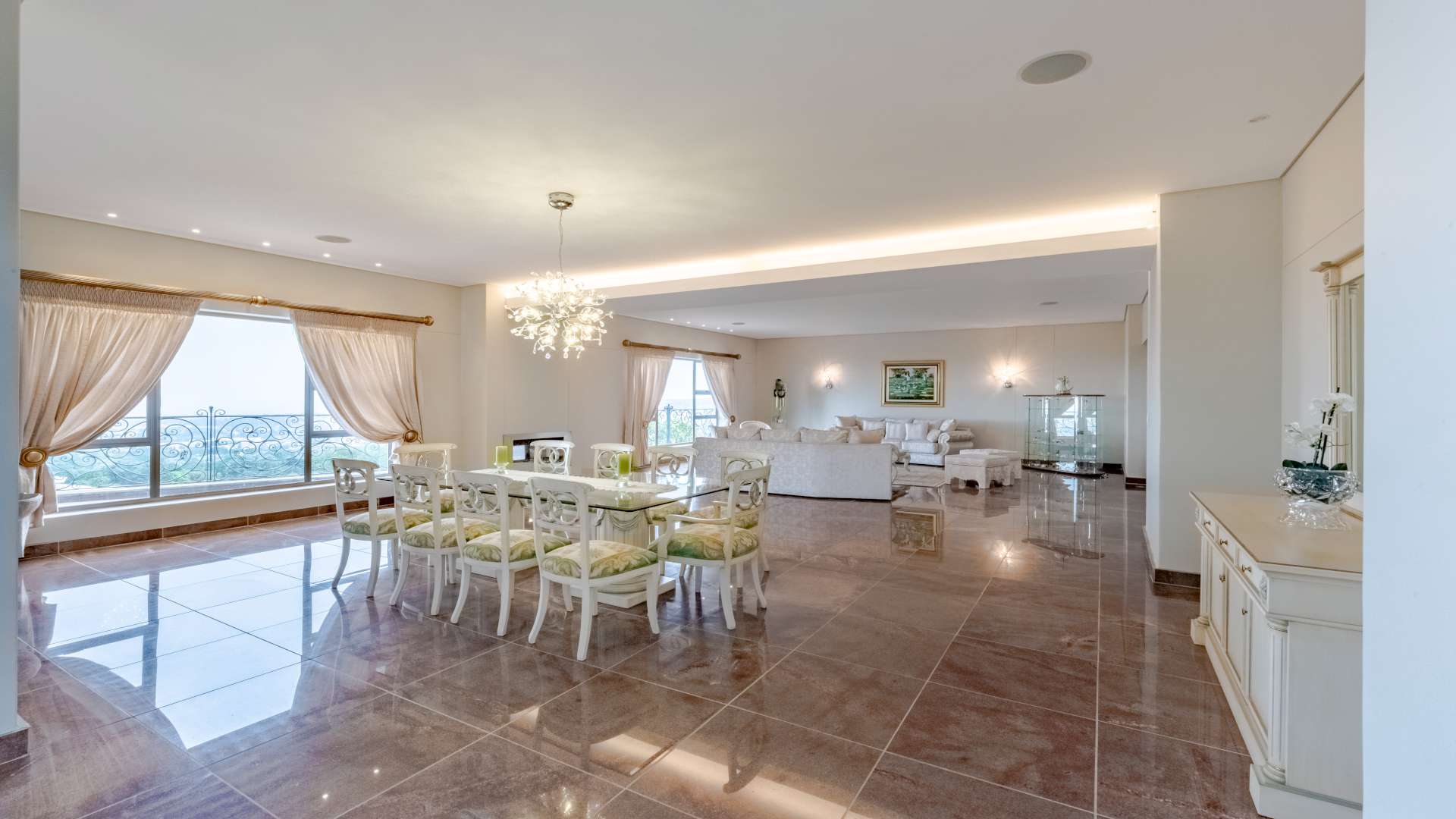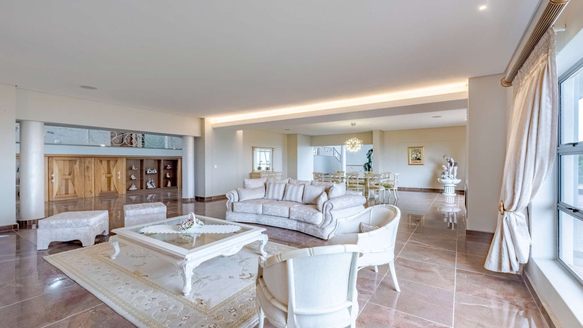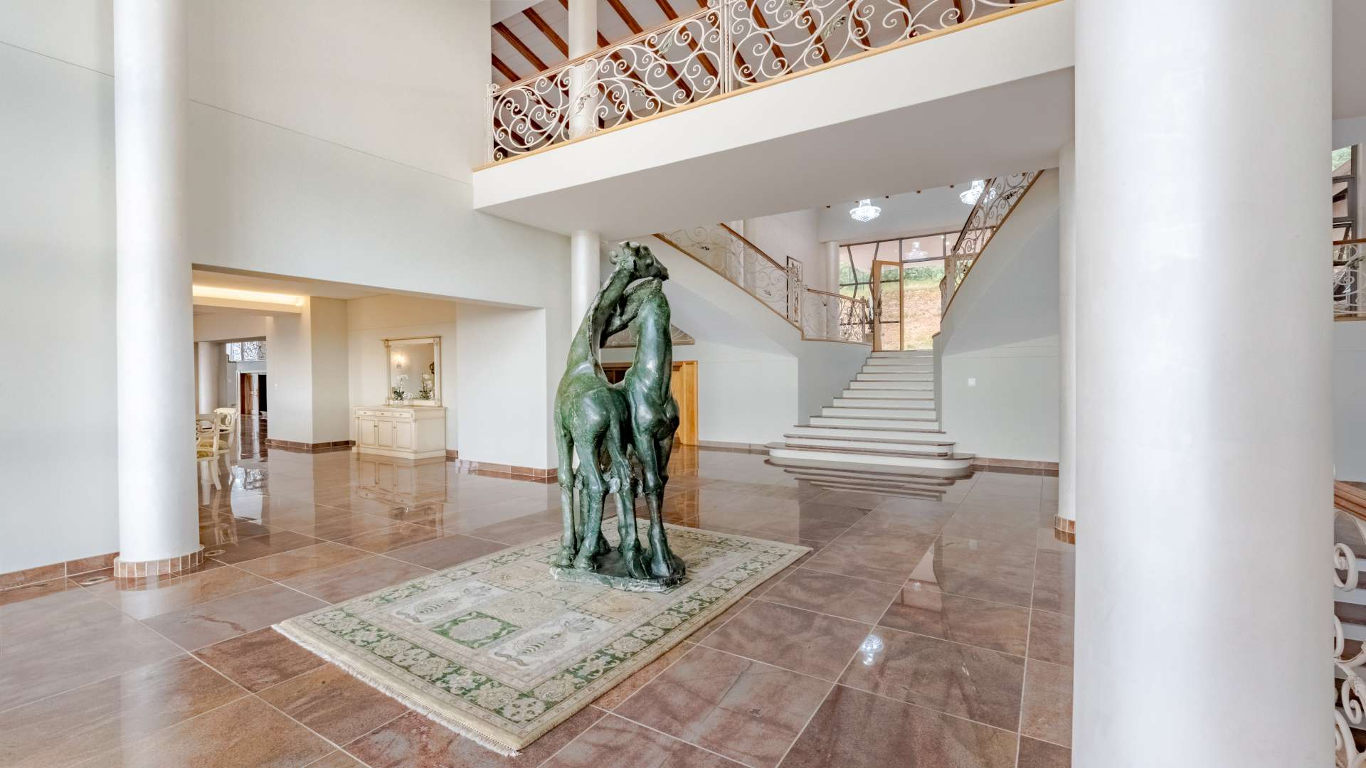 Step through the doors and into a luminous double-volume entrance hall, where an elegant staircase rises with quiet confidence, setting the tone for what lies beyond. Light dances effortlessly through the interiors, illuminating expansive living spaces where every window frames a view worth pausing for.
