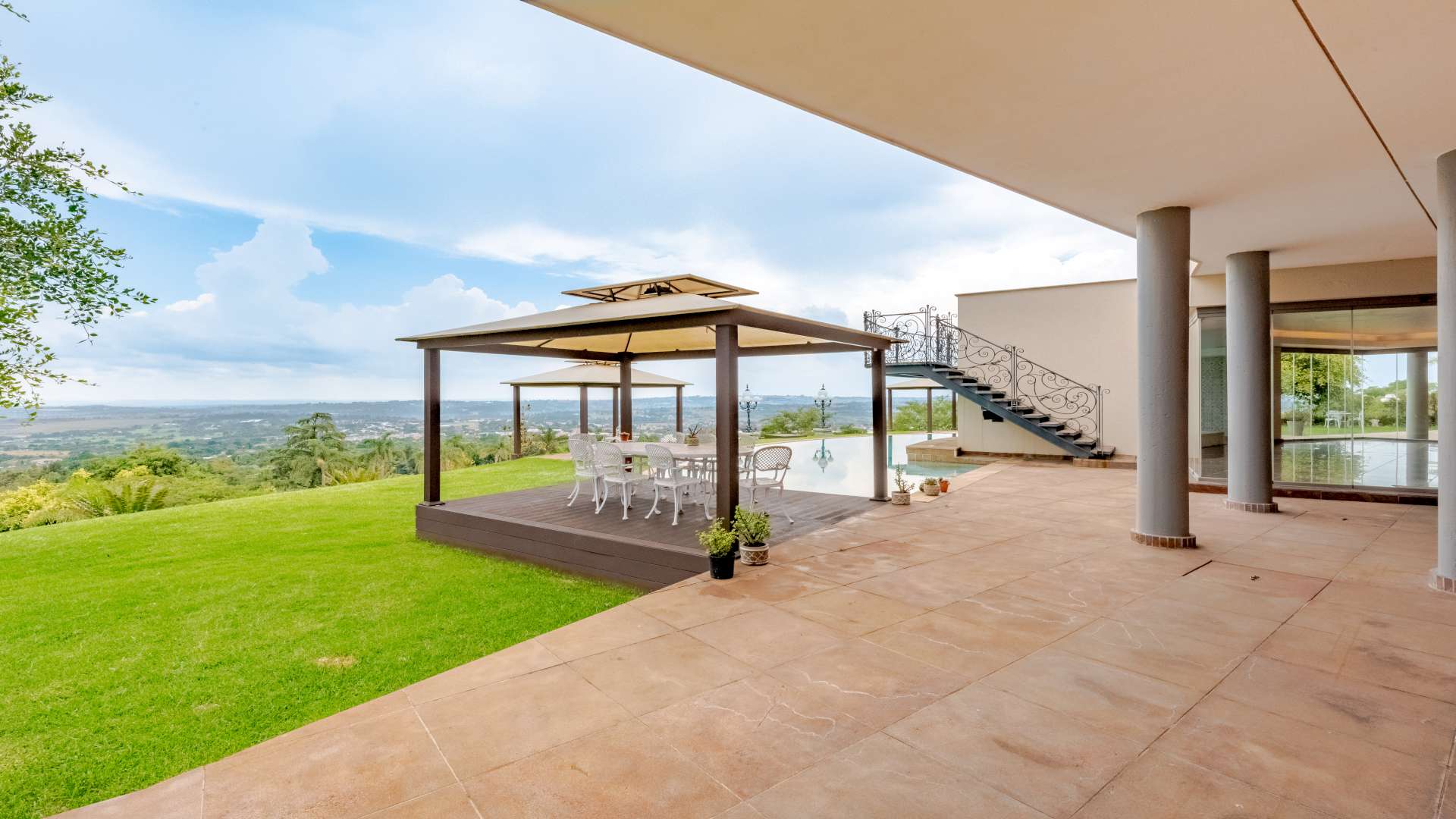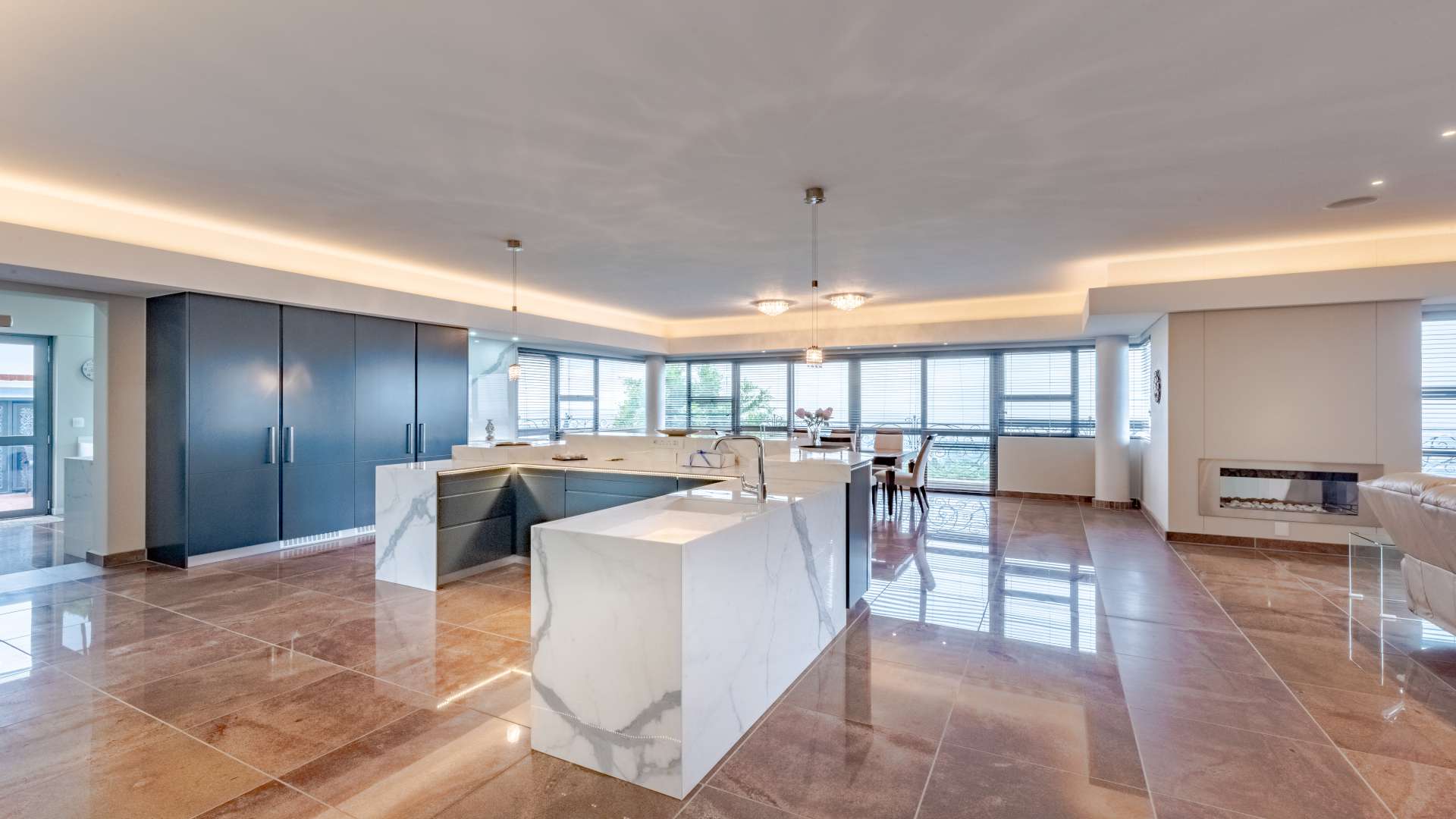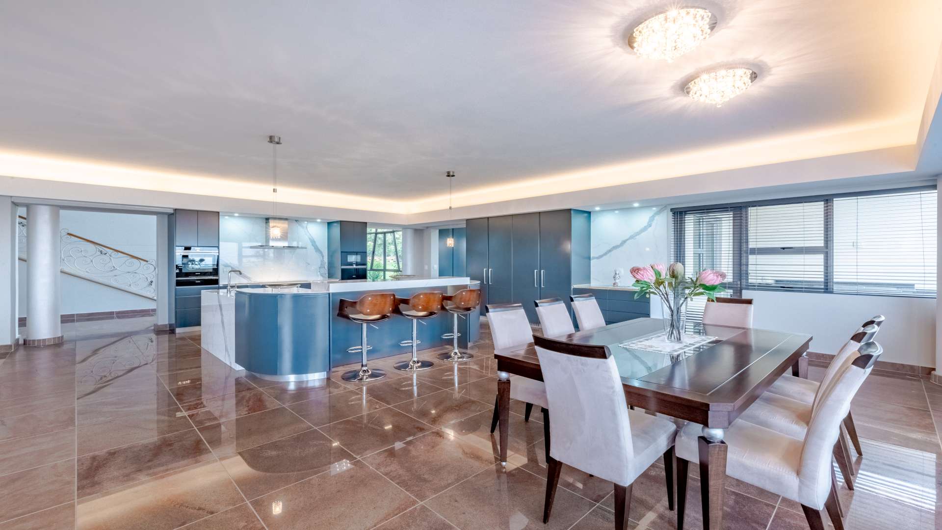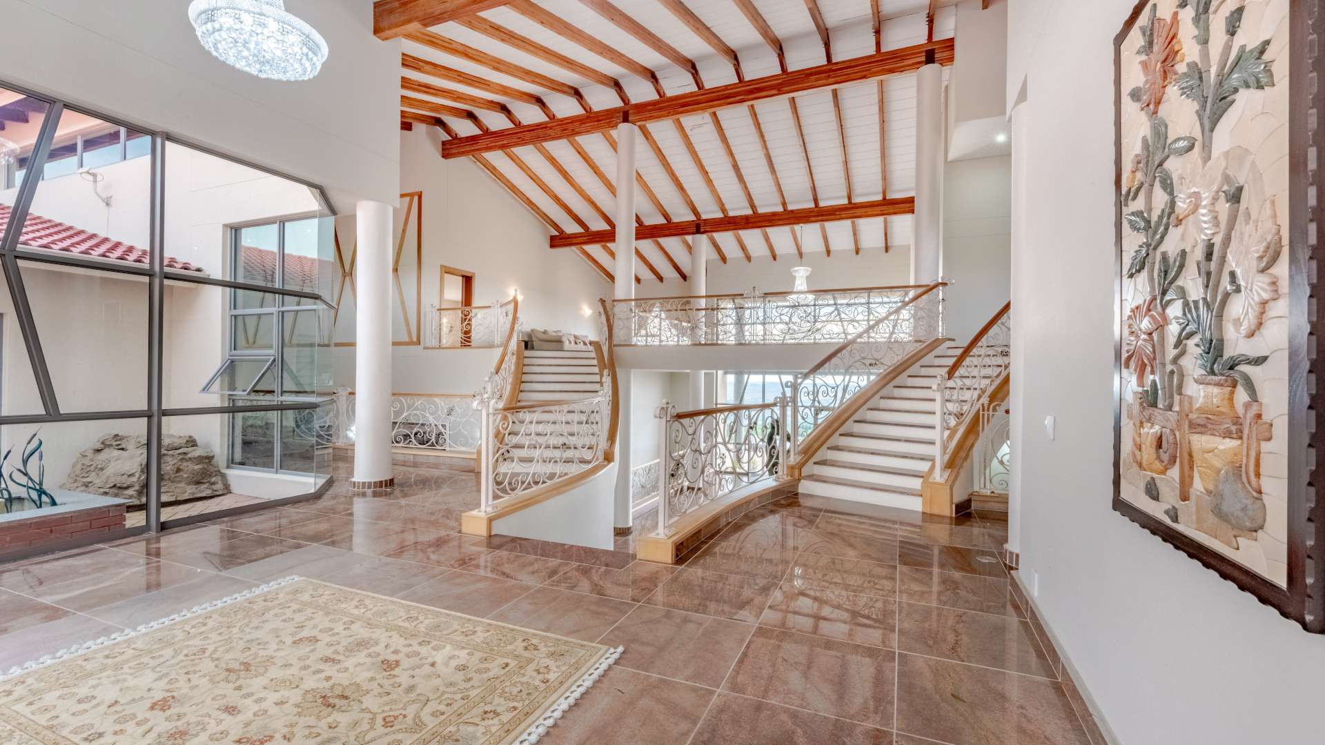 Step through the doors and into a luminous double-volume entrance hall, where an elegant staircase rises with quiet confidence, setting the tone for what lies beyond. Light dances effortlessly through the interiors, illuminating expansive living spaces where every window frames a view worth pausing for.