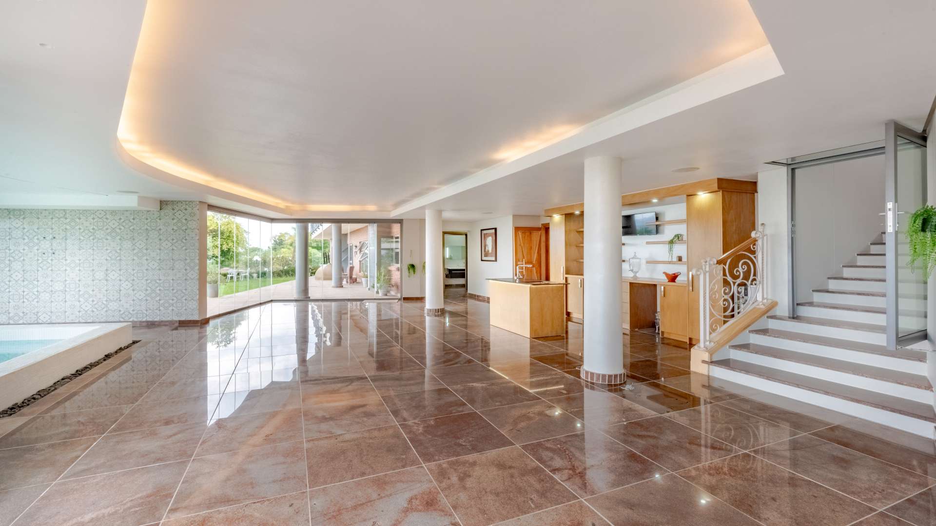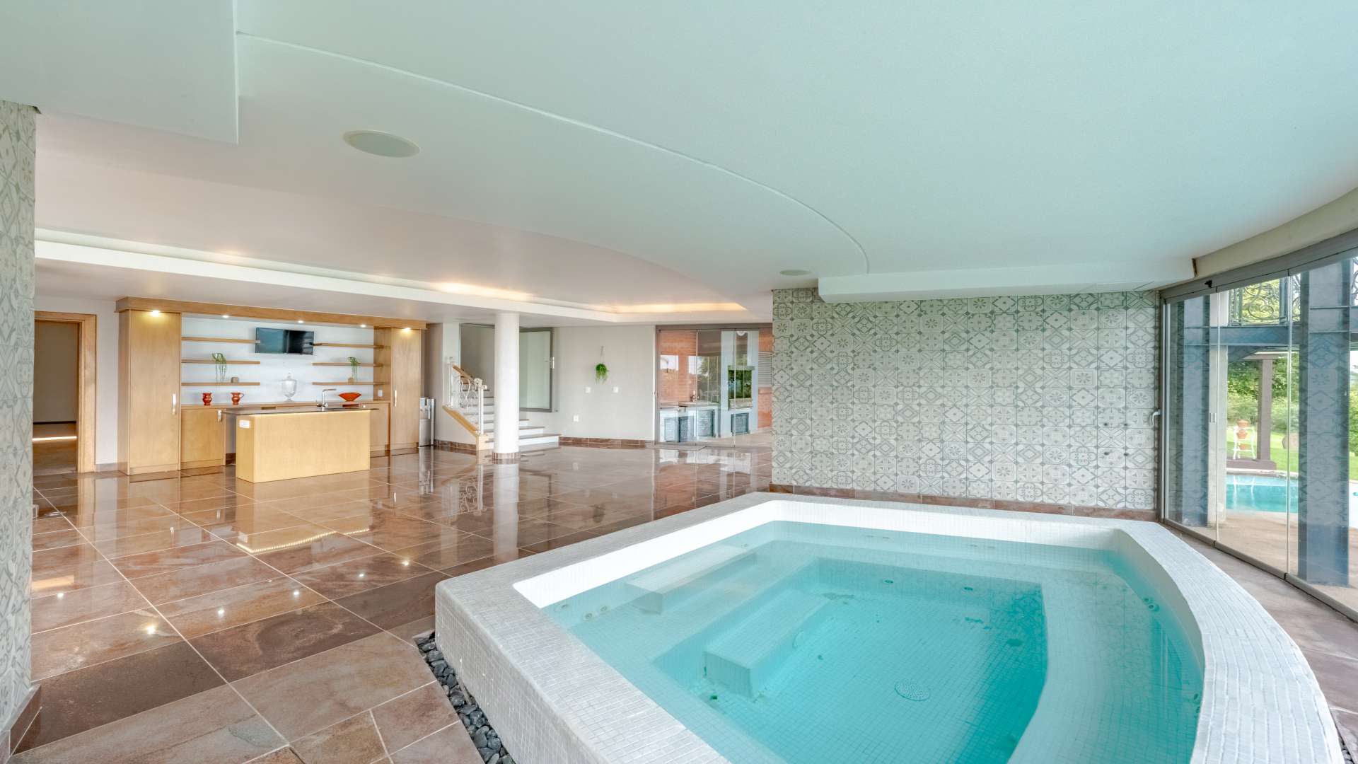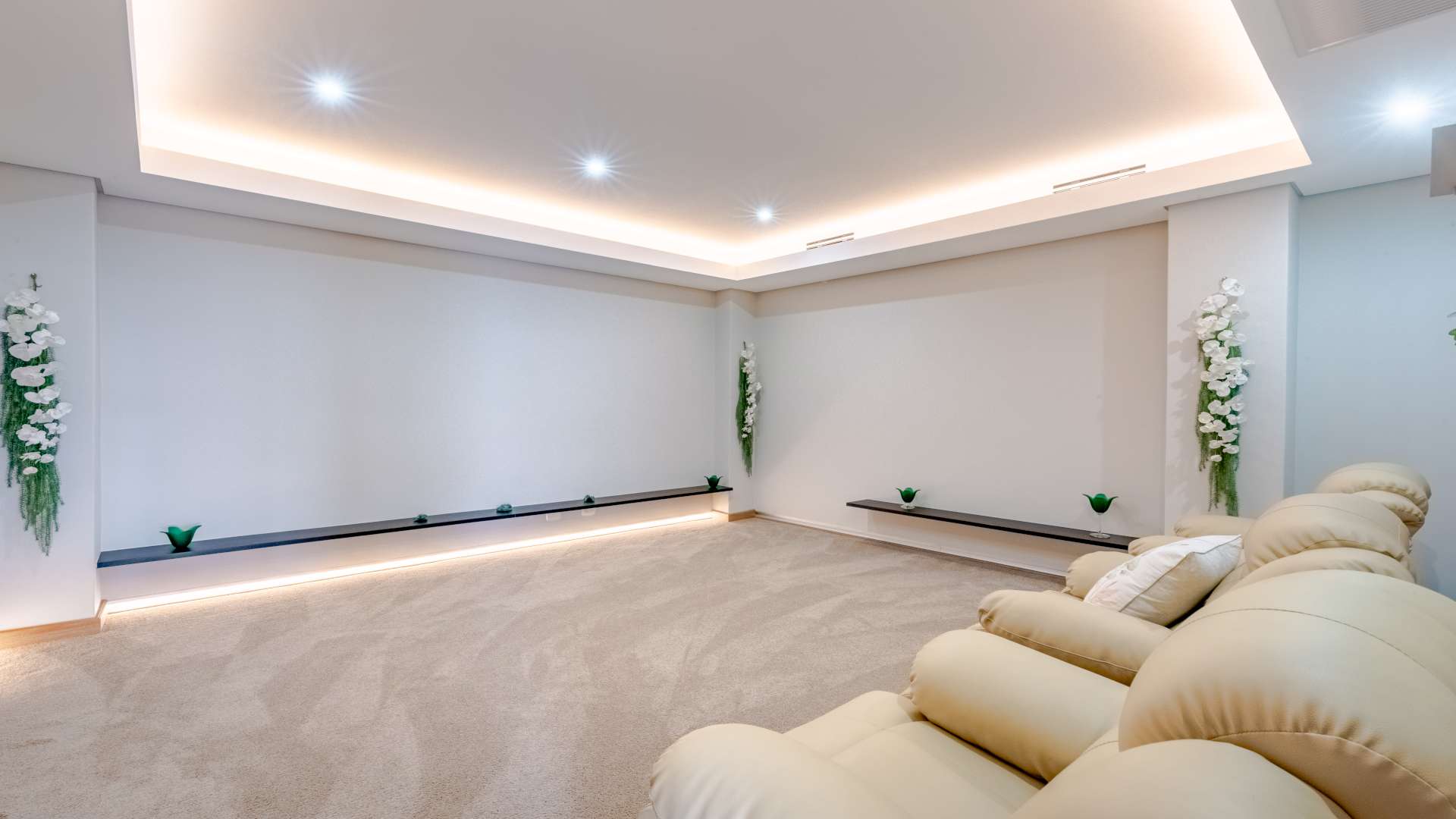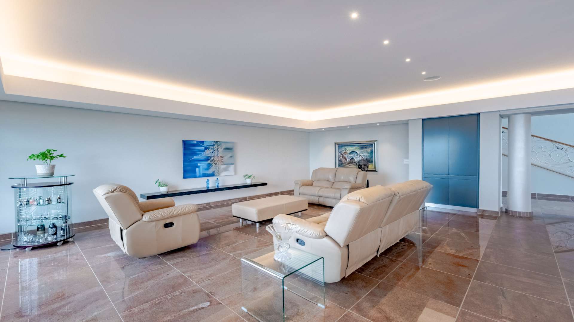 • Wellness & Entertainment Retreat: A dedicated indulgence wing awaits, featuring a tranquil spa area with its own kitchenette, a heated Roman bath, a massage room, a stylish bathroom with shower facilities, and a private cinema room for immersive movie nights.
