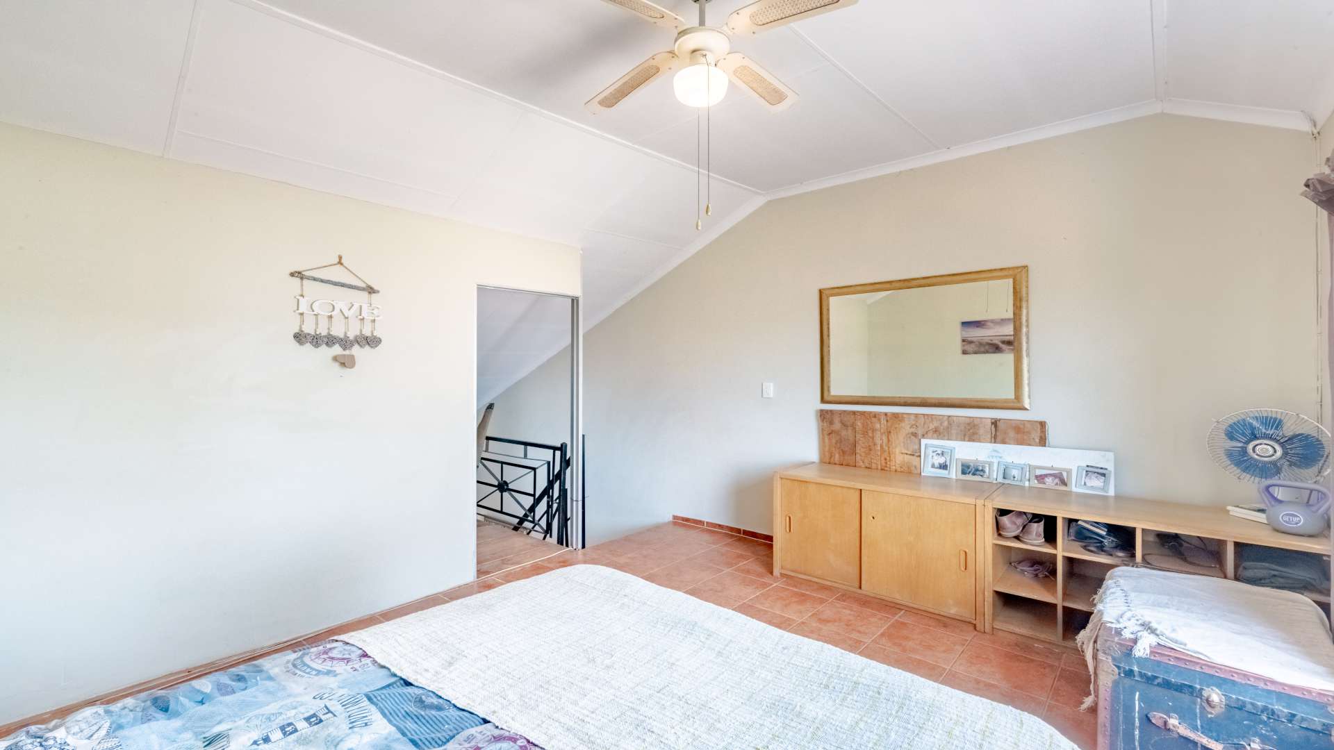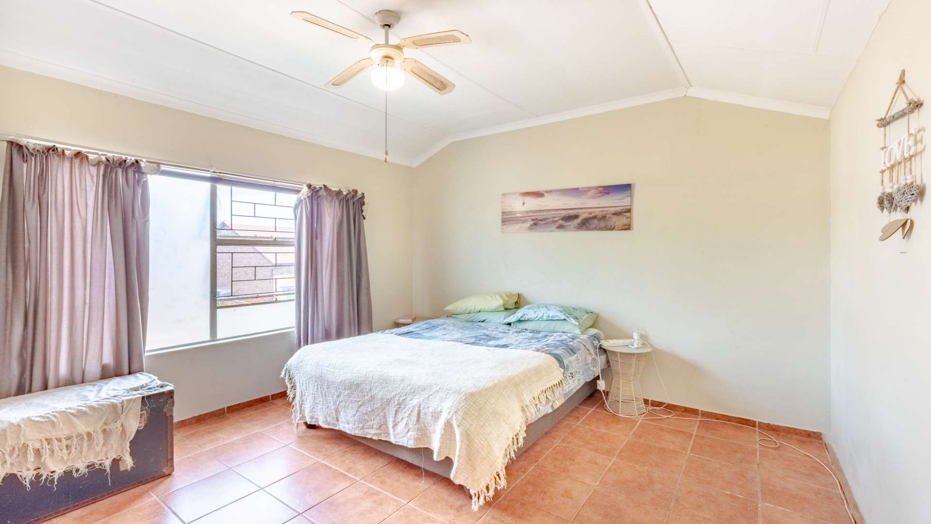 - Generous main bedroom with ceiling fan, built-in cupboards & curtain rod