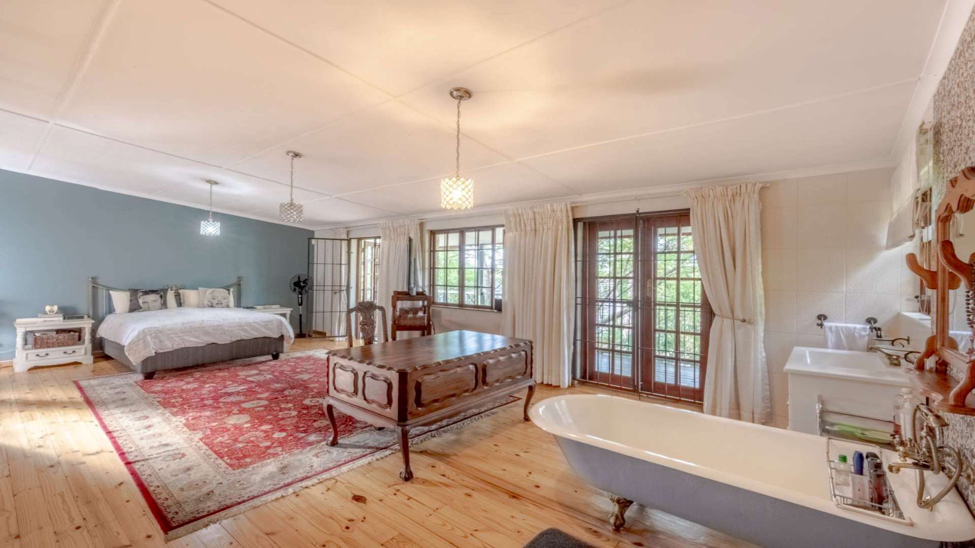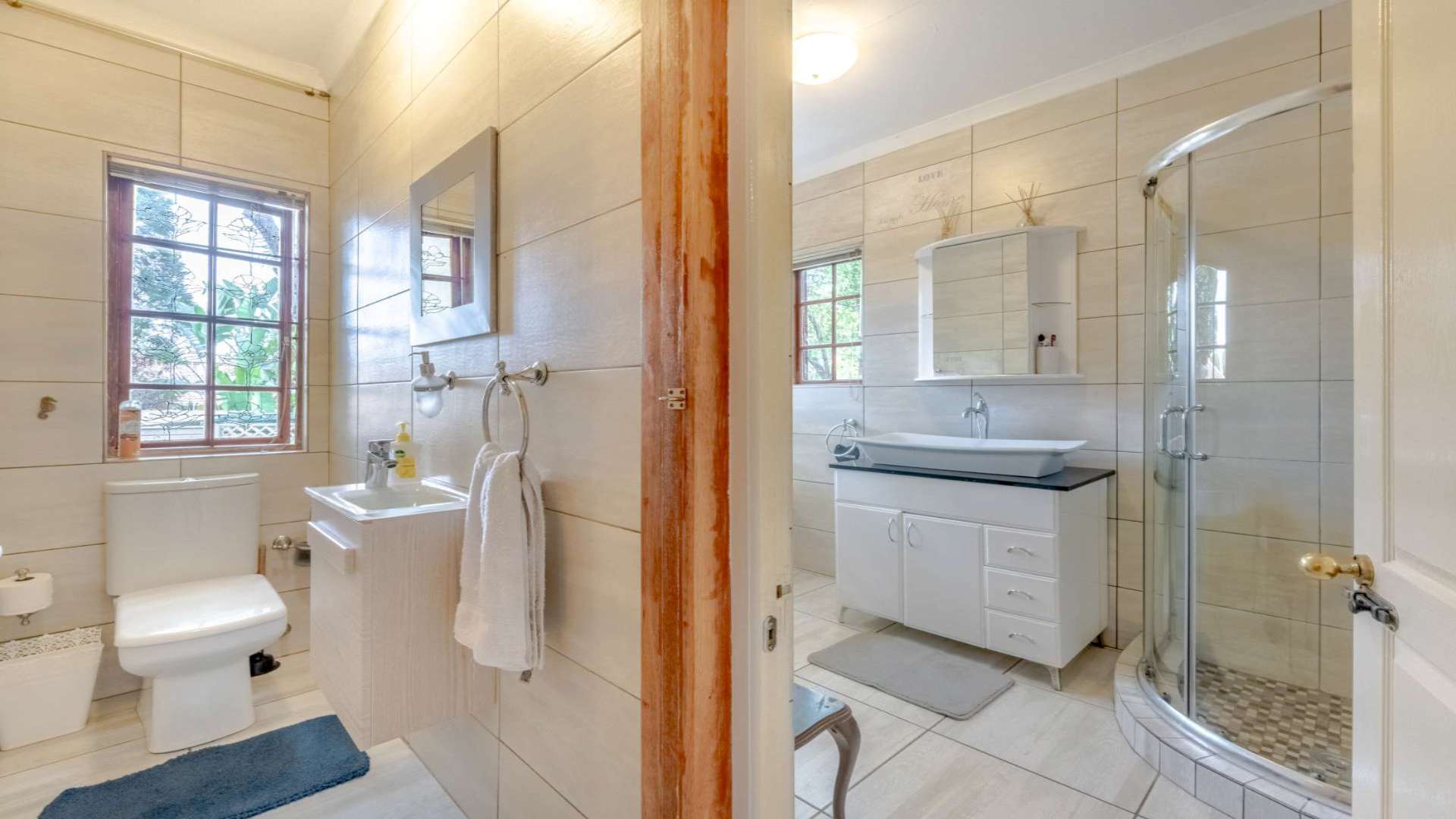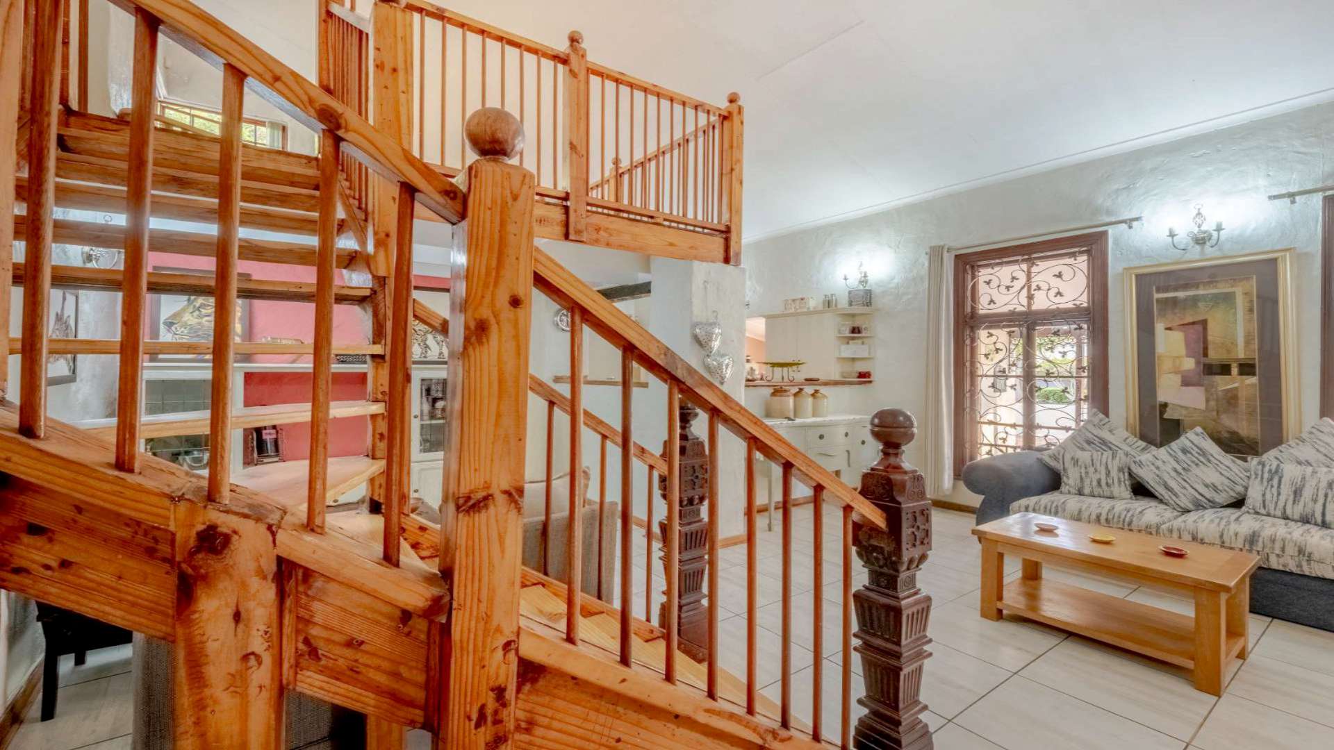 Boasting three generously sized bedrooms: two downstairs with laminated floors and built in cupboards, the upstairs main bedroom is a retreat unto itself and offers an open plan bathroom with shower, bath, toilet and basin plus a private balcony overlooking the stunning colorful garden.